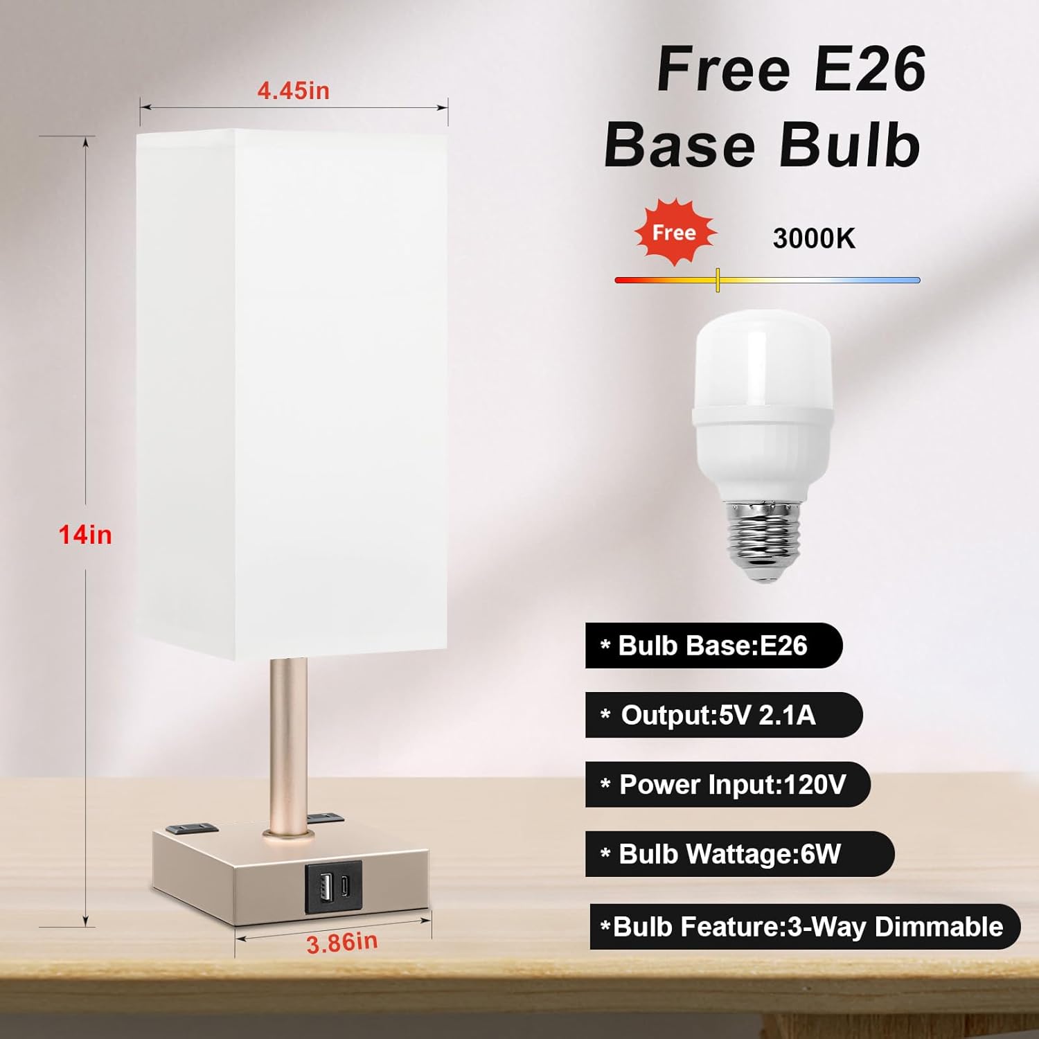 - Bedside Lamps Equipped with E26 LED bulbs - Instead of struggling to find a matching bulb, you'll receive a night desk lamp with an E26 base bulb that uses as little as 6 watts and is compatible with 120 volts. 3000K emits warm white light to reduce visual fatigue and protect your eyes, especially suitable for reading and resting. Its light mimics natural light at dusk, helping to relax and improve concentration