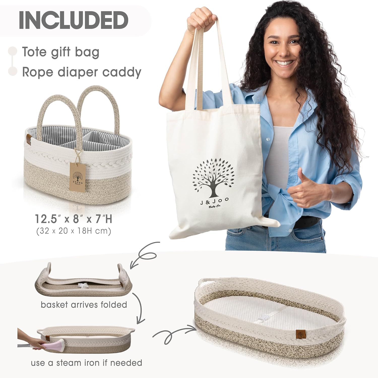 Baby Changing Basket Includes Diaper Caddy - Breathable & Waterproof Dual-Cover, Portable, Changing Pad for Dresser & Changing Table, Gift for Baby Shower, Cotton Rope Basket for Baby