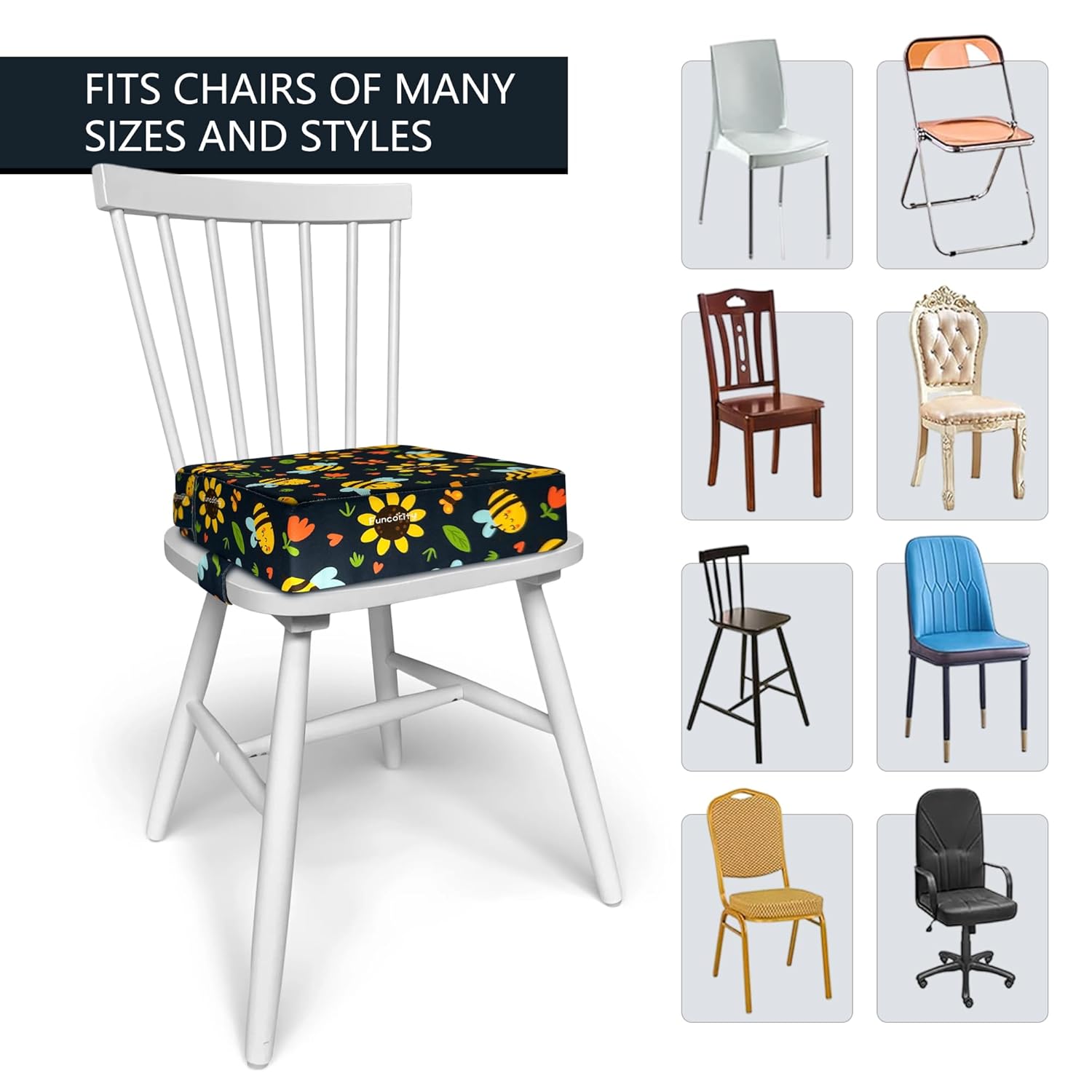 - 【Colorful and Fun Design】-Featuring vibrant and playful patterns, this booster seat for toddlers adds joy to mealtime and encourages independent eating, keeping children engaged and comfortable.