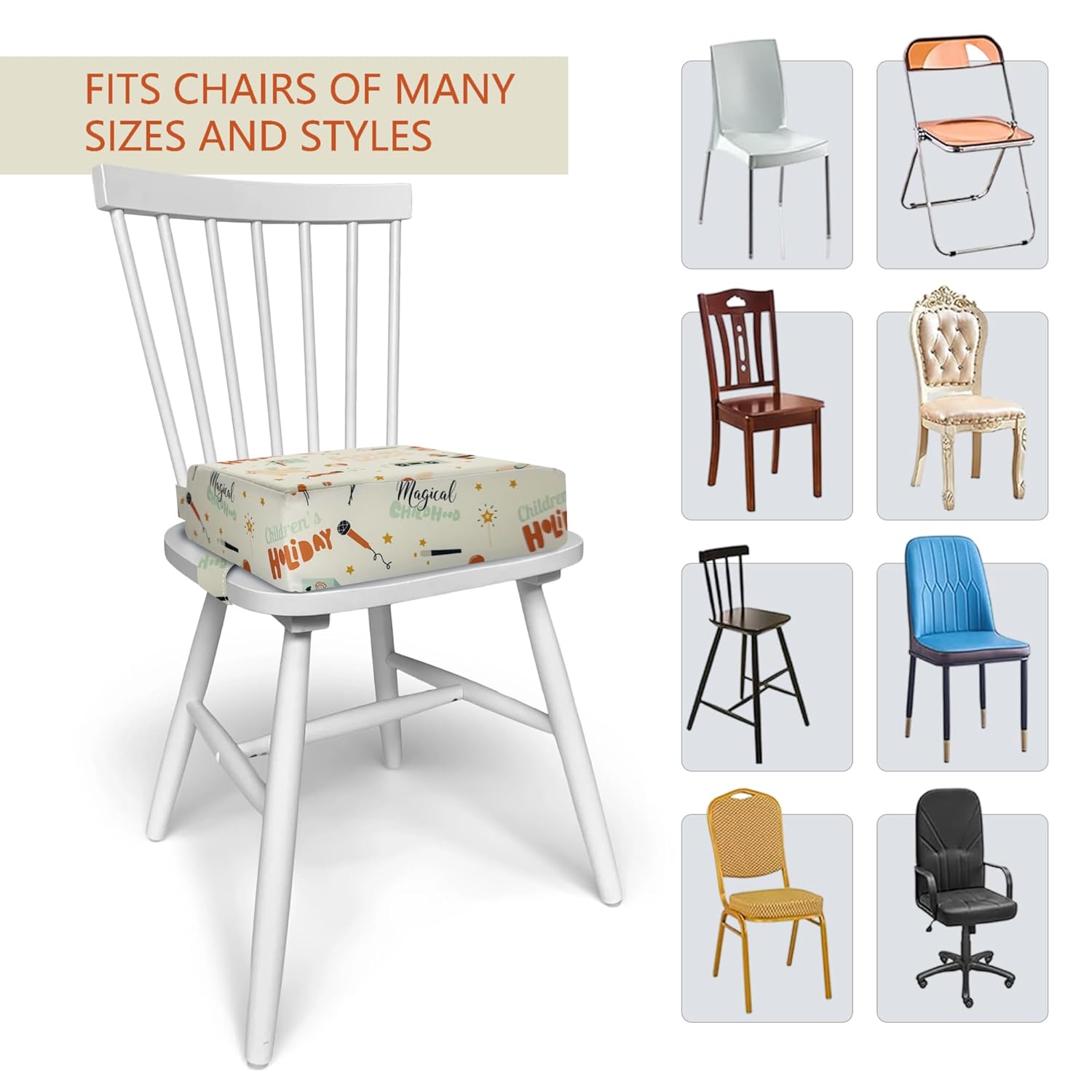 Toddler Booster Seat for Dining Table, Portable Booster Seat for Kitchen Chair, 4 Inch High-Density Foam Cushion with Adjustable Safety Straps and Non-Slip Bottom, Perfect for Kids Travel and Daily