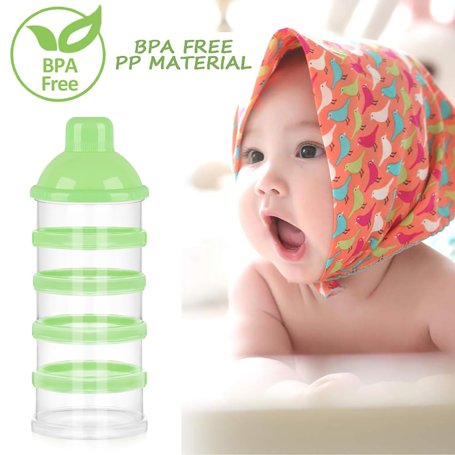 - Capacity - 5 layers design. You can put quantity of baby formula on each layer. A total of 5 layers of pre measured milk powder or food can be placed. Very pratical formula container for on the go.