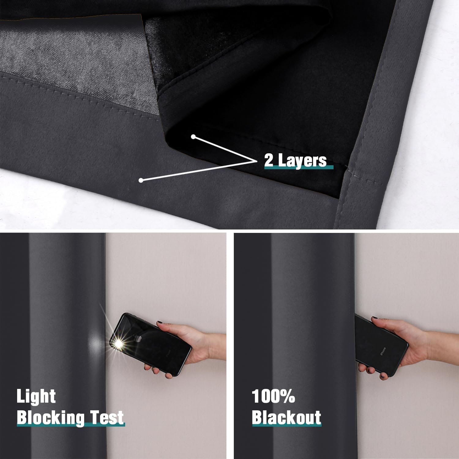 ChrisDowa 100% Blackout Curtains 102 inch Long for Bedroom with Black Liner, 2 Thick Layers Total Blackout Thermal Insulated Grommet Window Curtains 2 Panels Set (Dark Grey, 52 x 102 Inch)
