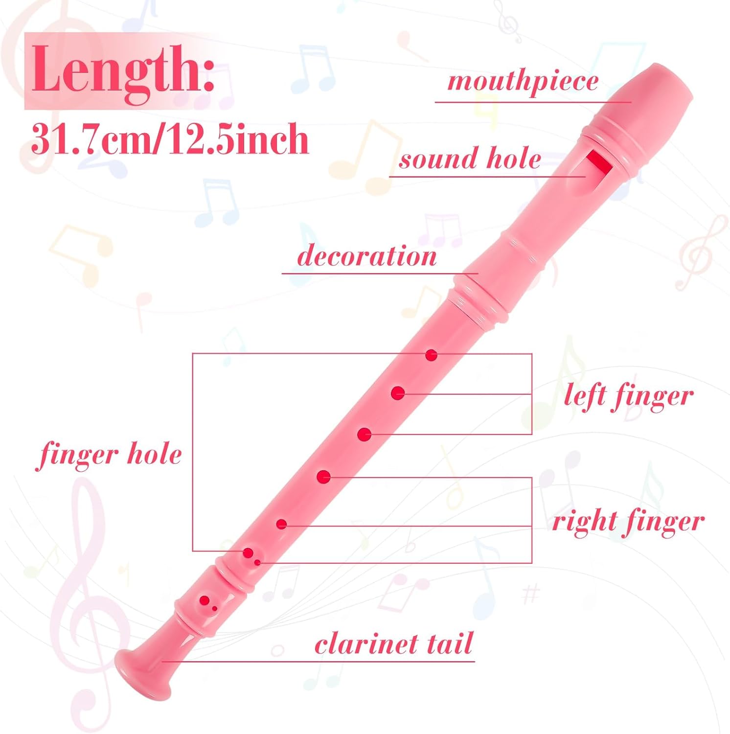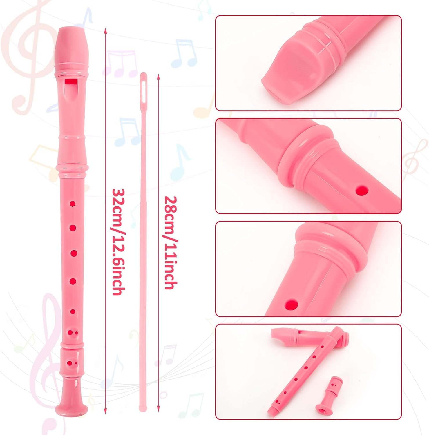 - Package Include: Comes with 4 sets pink recorder instrument , each set includes 1 soprano recorder, 1 cleaning rod, 1 fingering chart instruction