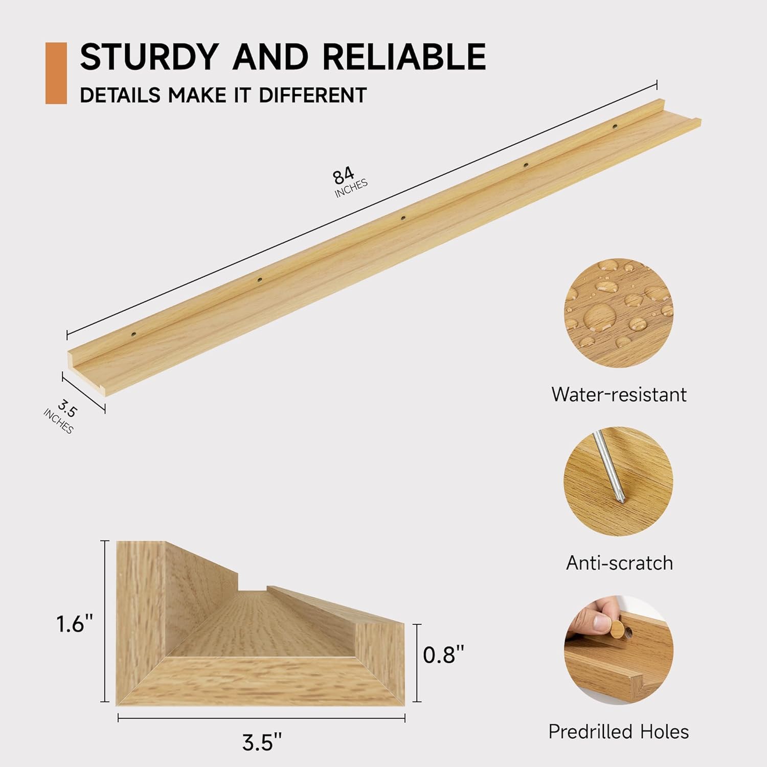 - 3.5" PICTURE LEDGE DESIGN: Ideal for displaying photos, artwork, or collectibles, these feature a thoughtful extremely narrow 3.5-inch width ledge design to prevent items from sliding forward, its mounting holes are spaced 16 inches apart for secure mounting to wall studs uncluttered aesthetic
