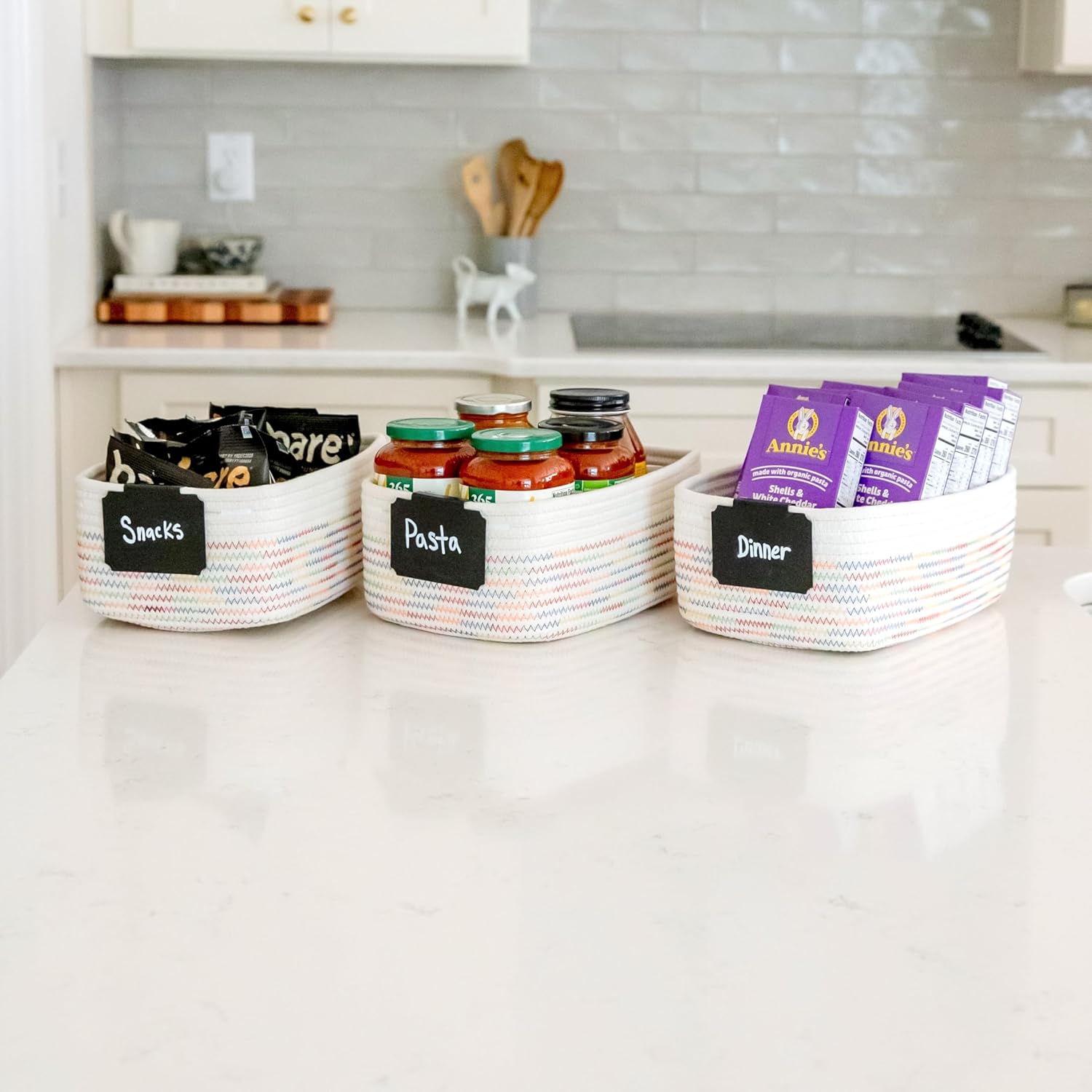 NaturalCozy 11.8"x8"x4.5” Rectangle Storage Baskets for Shelves 3 Pack | Cotton Rope Woven Small Baskets for Organizing | Small Storage Bins for Nursery, Bathroom, Closet, Shelf, Decorative, Gift
