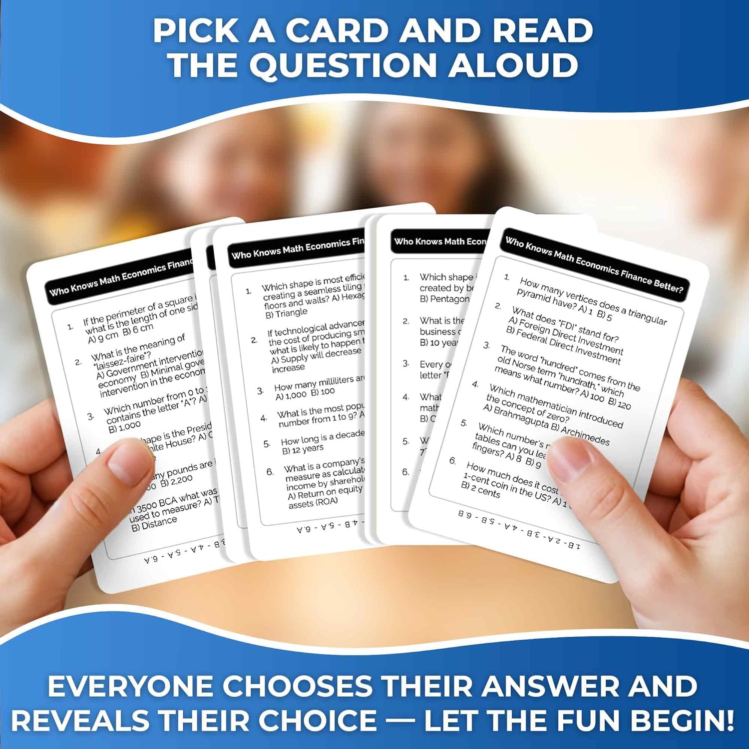Board Games for Kids 8-12 and Family - STEM Card Game for Kids Age 12+ - Who Knows Math Finance Economics Better? - Educational Quiz with 500+ Questions - Great for Learning and Game Night