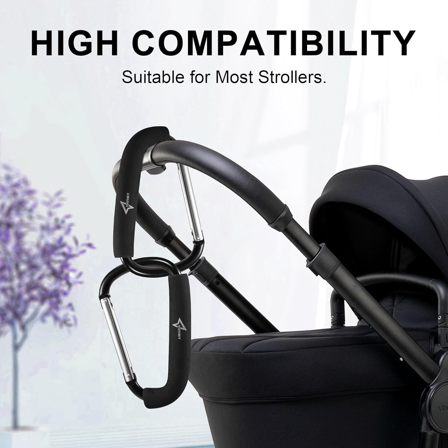 - 【Foam Grip & Aluminum】Built with high-strength aluminum alloy to ensure heavy duty carabiner performance, this Mummy Hook for Stroller includes a non-slip foam grip that prevents shifting and protects your handle from scratches