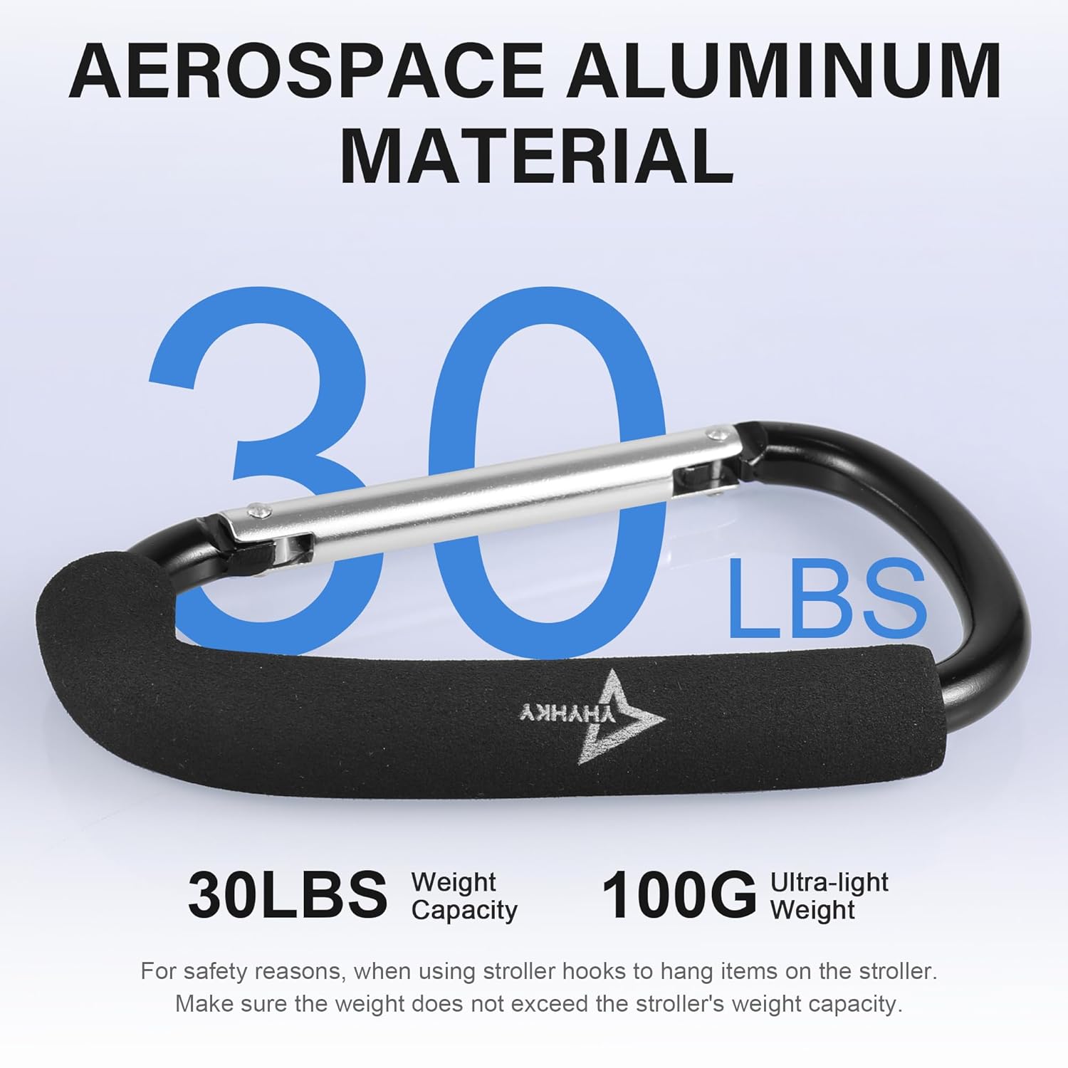 - 【Foam Handle & Aluminum Construction】Crafted with durable aluminum alloy for Heavy Duty Carabiner Clips performance, this Mummy Hook for Stroller features a non-slip foam handle that keeps items secure and safeguards your stroller handle from damage.