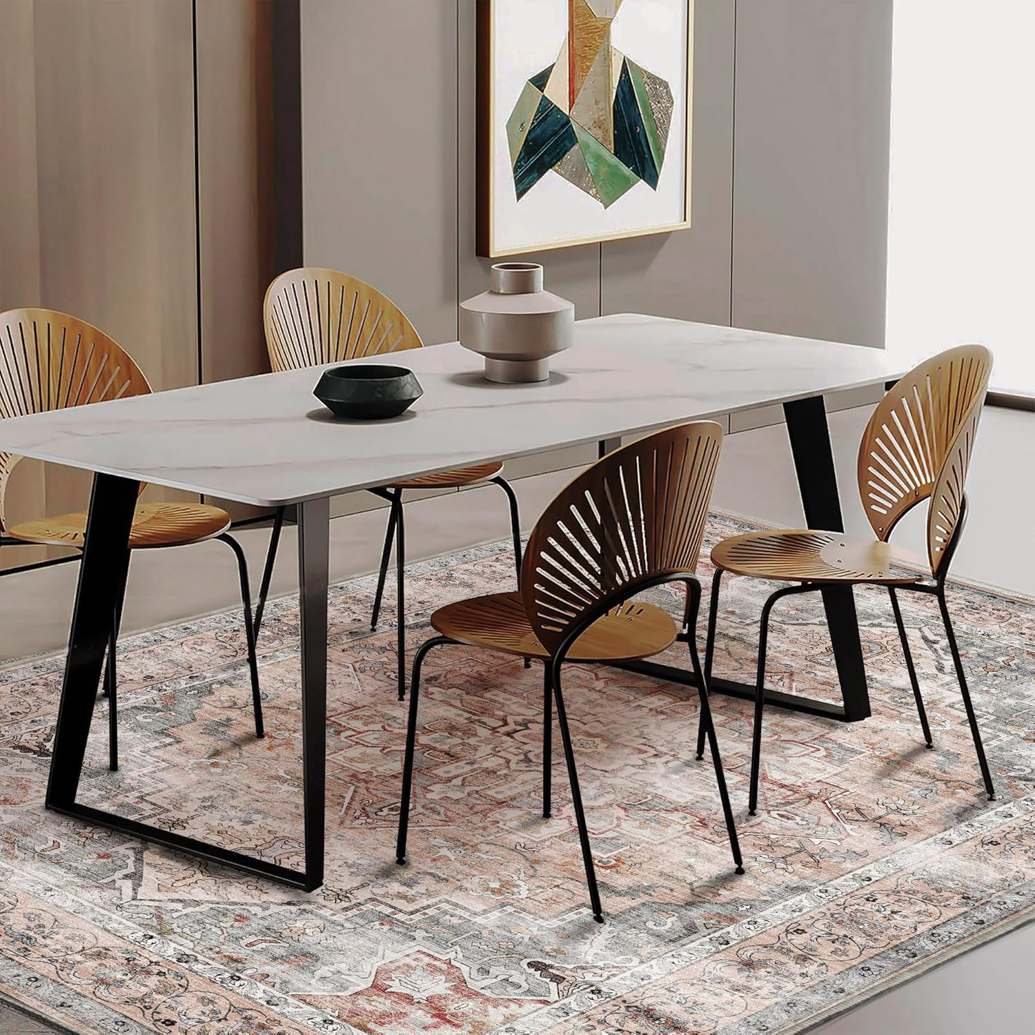 - Ultra-thin Safe: This ultra-thin Moroccan rug can be easily placed in entryways and under furniture, and won't get stuck on doors and become a tripping hazard. The sweeping robot can move freely to clean the carpet.This indoor rug can be used in many occasions, such as entry, living room, bedroom, dining room and more