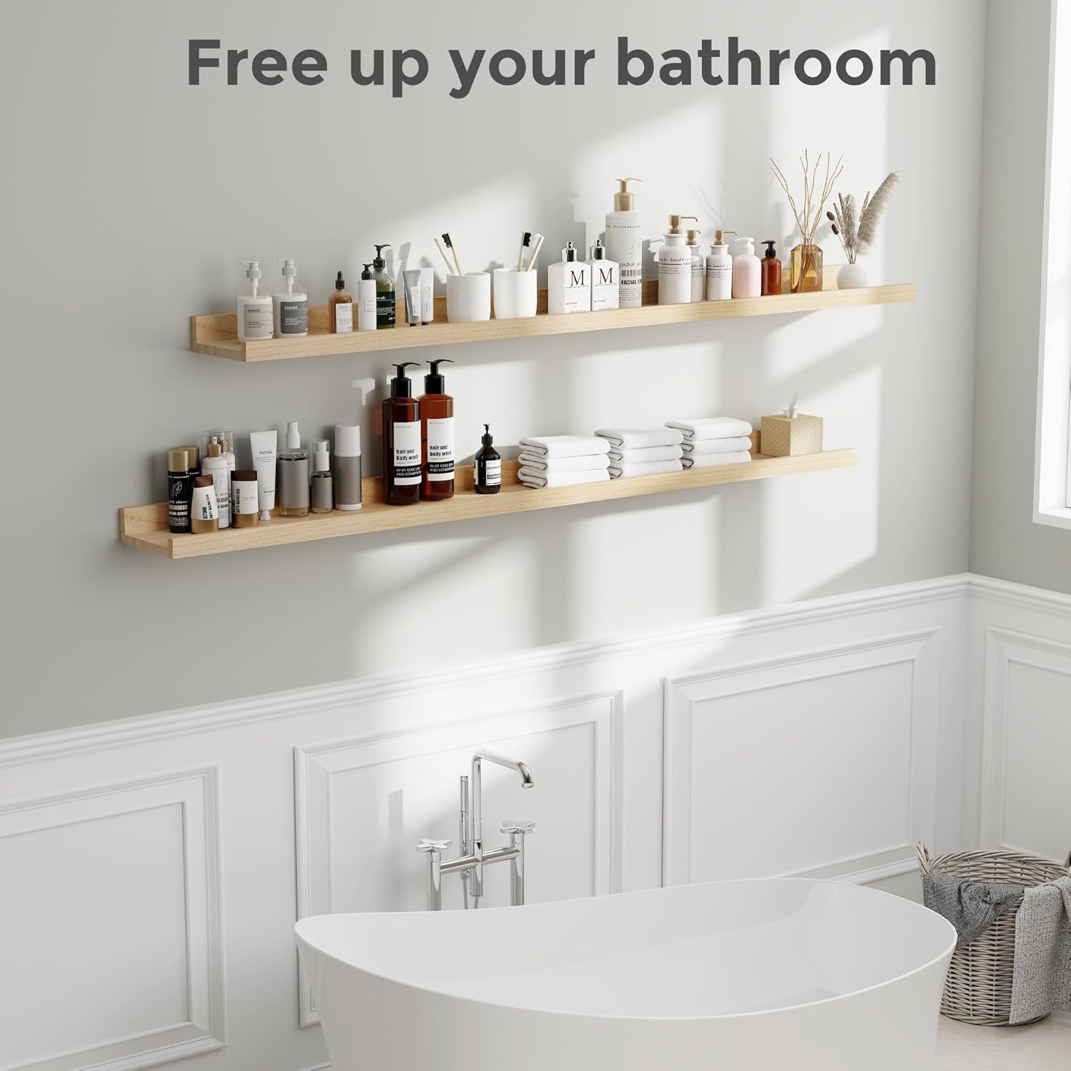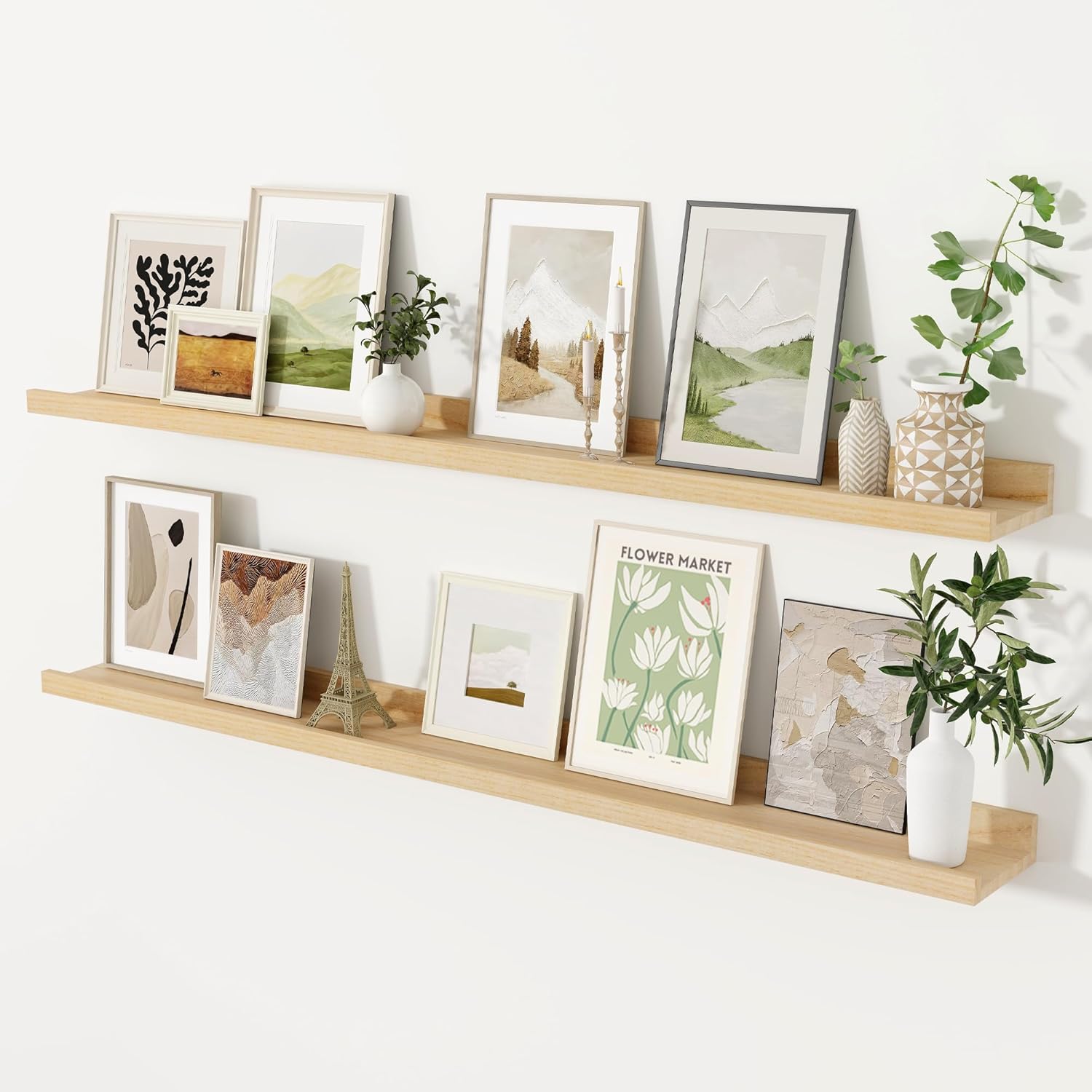 Picture Ledge Shelf, Floating Shelves Set of 2, 55 Inches Long Large Nursery Book Shelves for Toys Storage, Kids Bookshelf Wall Mounted for Living Room Bedroom Decor Books Photo Frames, Natural