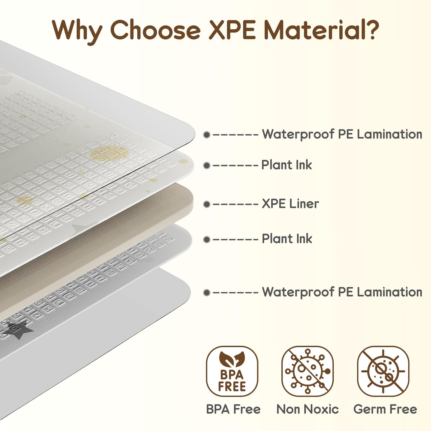 - SAFE XPE MATERIAL: Fits inside a baby playpen with an inside diameter of 50 x 50 inches. The baby play mat for the floor is made of high-density XPE foam material, which is soft and protects your baby's sensitive skin from the hard floor.