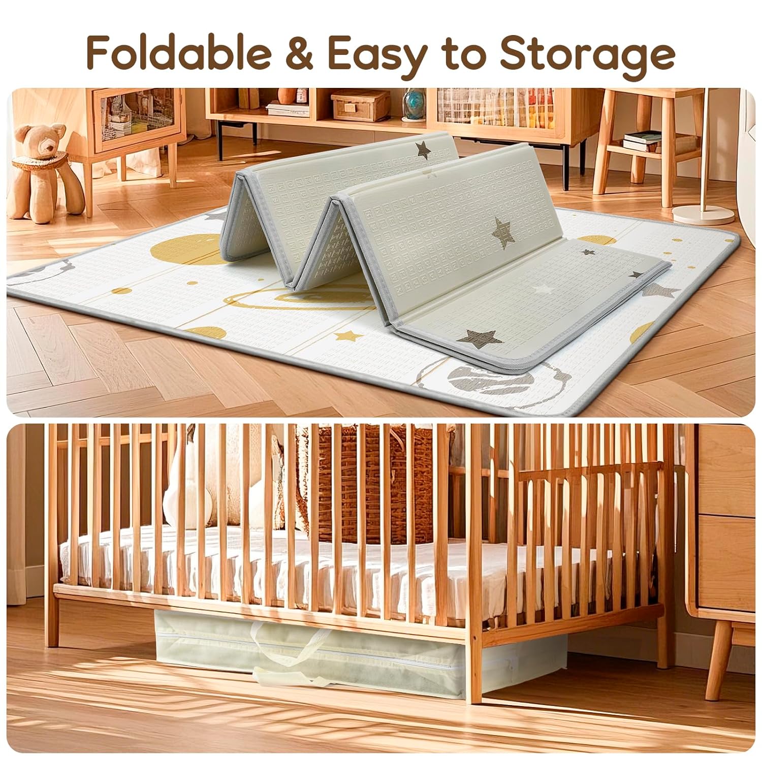 - FOLDABLE & EASY TO CARRY: The baby foam playmat is easy to carry and store and has a foldable design. It comes with a carry bag, and the baby mat for the floor can be quickly folded into a compact size into a bag for outdoor use.