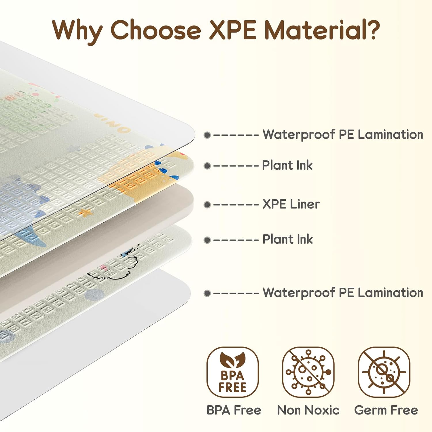 - WATERPROOF & EASY TO CLEAN: The surface of this crawling mat is 100% waterproof, water and milk stains will not soak the mat, what you need to do is wipe it with a damp towel to keep the playmat for the floor clean as new.