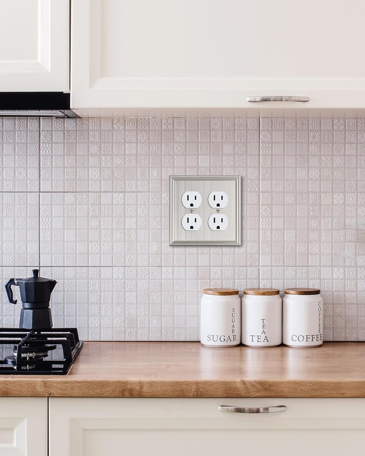 - Wide Application - Versatile and easy to match, These decorative outlet covers are compatible with Duplex Outlet, Double Light Switch. Complements any interior style, whether your decor is modern, traditional, or contemporary, this brushed nickel switch plate cover seamlessly blends in and glams up your wall.