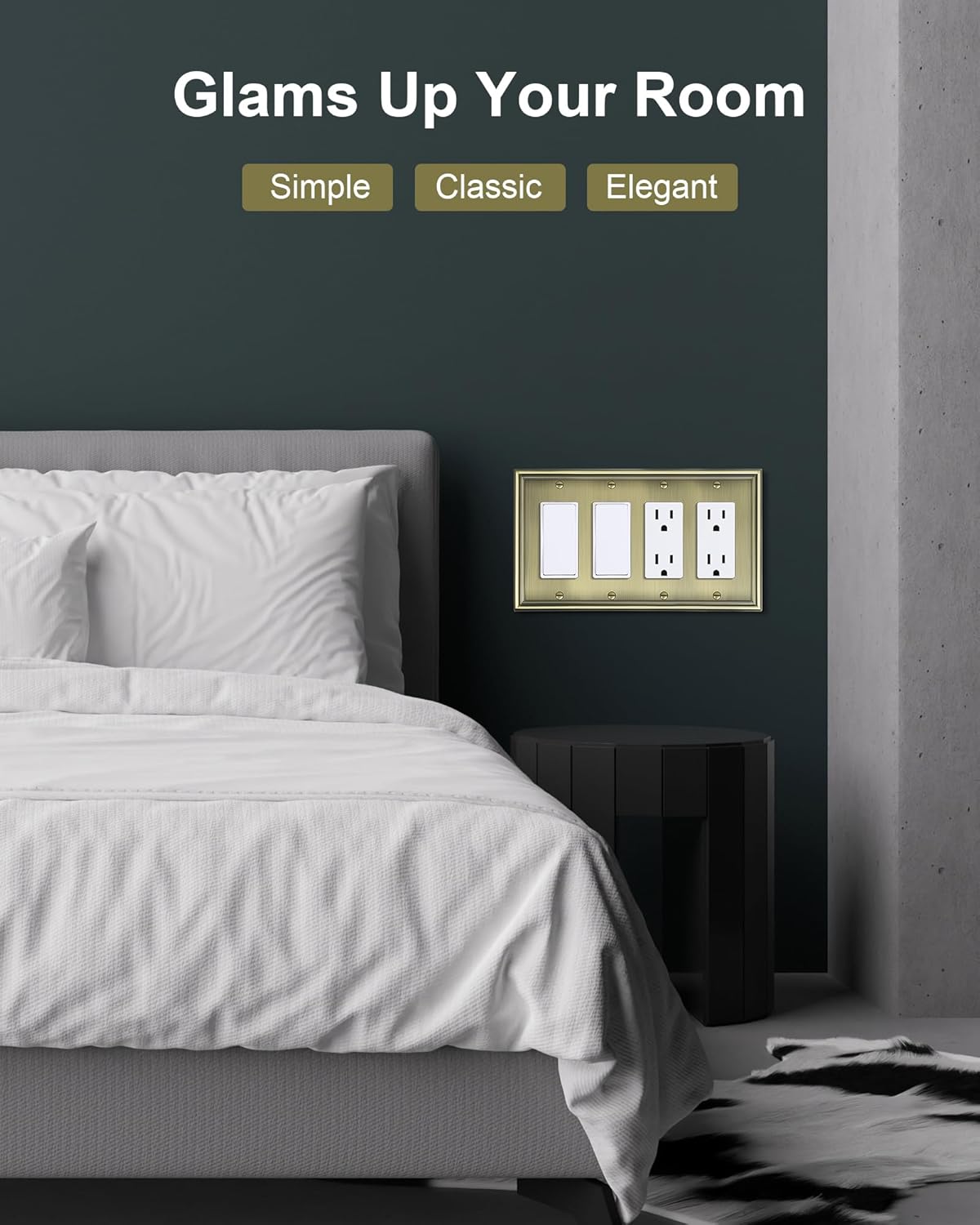 - Wide Application - Versatile and easy to match, These brass wall plates are compatible with Decorator Outlet Receptacle, Roker Switch, Dimmer Switch, GFCI Outlets. Complements any interior style, whether your decor is modern, traditional, or contemporary, this decorative switch plate cover seamlessly blends in and glams up your wall.