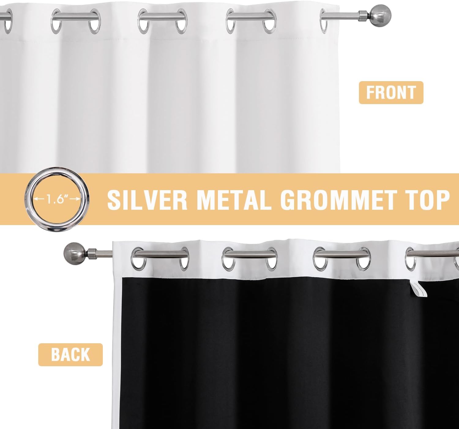 ChrisDowa 100% Blackout Curtains 78 inch Long for Bedroom with Black Liner, 2 Thick Layers Total Blackout Thermal Insulated Grommet Window Curtains 2 Panels Set (Pure White, 42 x 78 Inch)