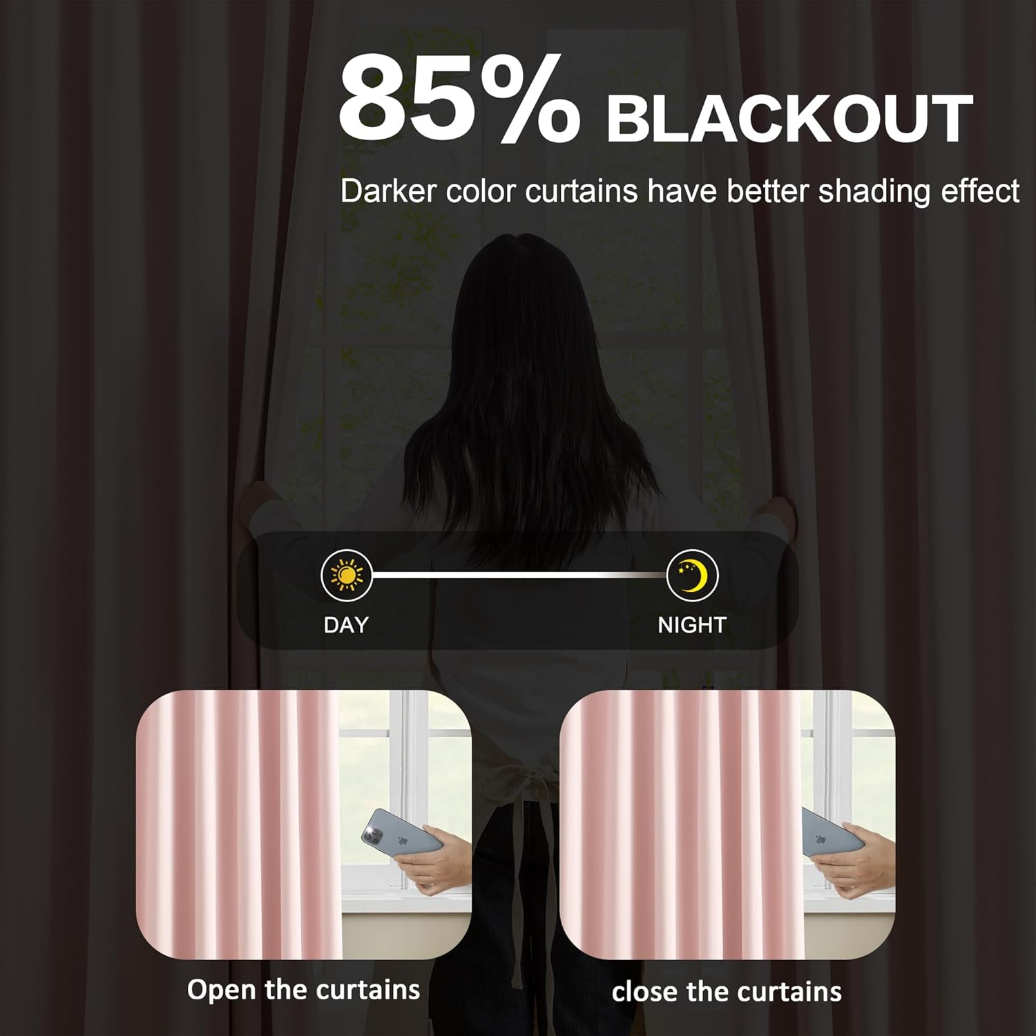 - Room Darkening: Durable polyester fabric without liner. Blackout curtains to impede 85%-95% unwanted light and UV rays(Darker color curtains have better shading effect).