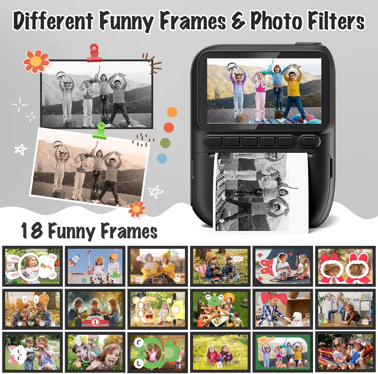 - 【One-Click Printing Kids Camera】Our Kids Instant Print Camera supports instant automatic printing of high-quality vivid "black and white" photo paper directly from the camera body. The camera also comes with 5 color pencils, allowing kids to personalize their prints with unique designs.