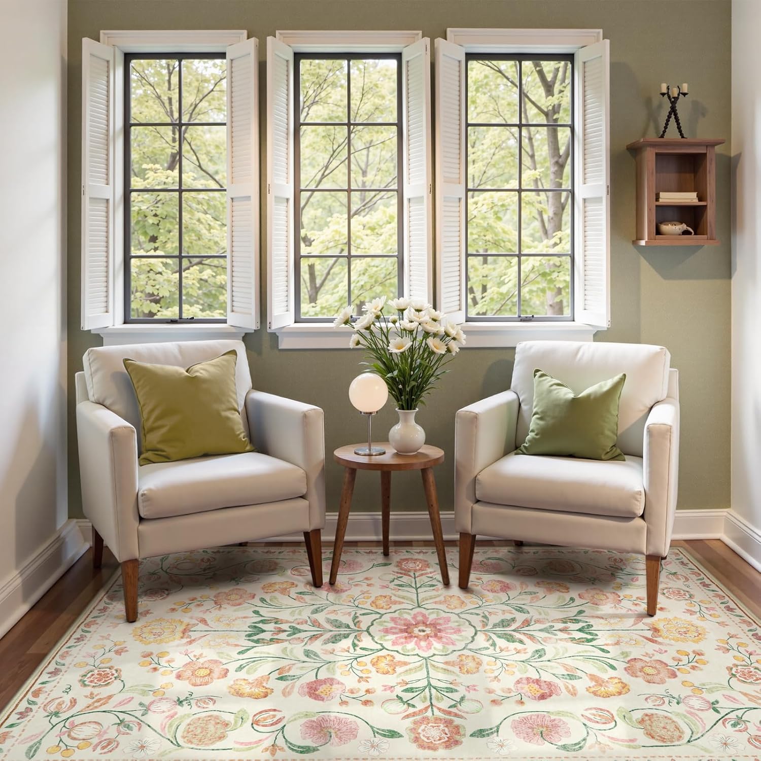 - Versatile Use: With its beautiful floral pattern and vintage distressed style, our boho area rug brings artistic flair to any room. Suitable for living rooms, bedrooms, dining areas, playrooms, or home offices, this rug combines comfort with a unique design, effortlessly complementing a variety of decor styles