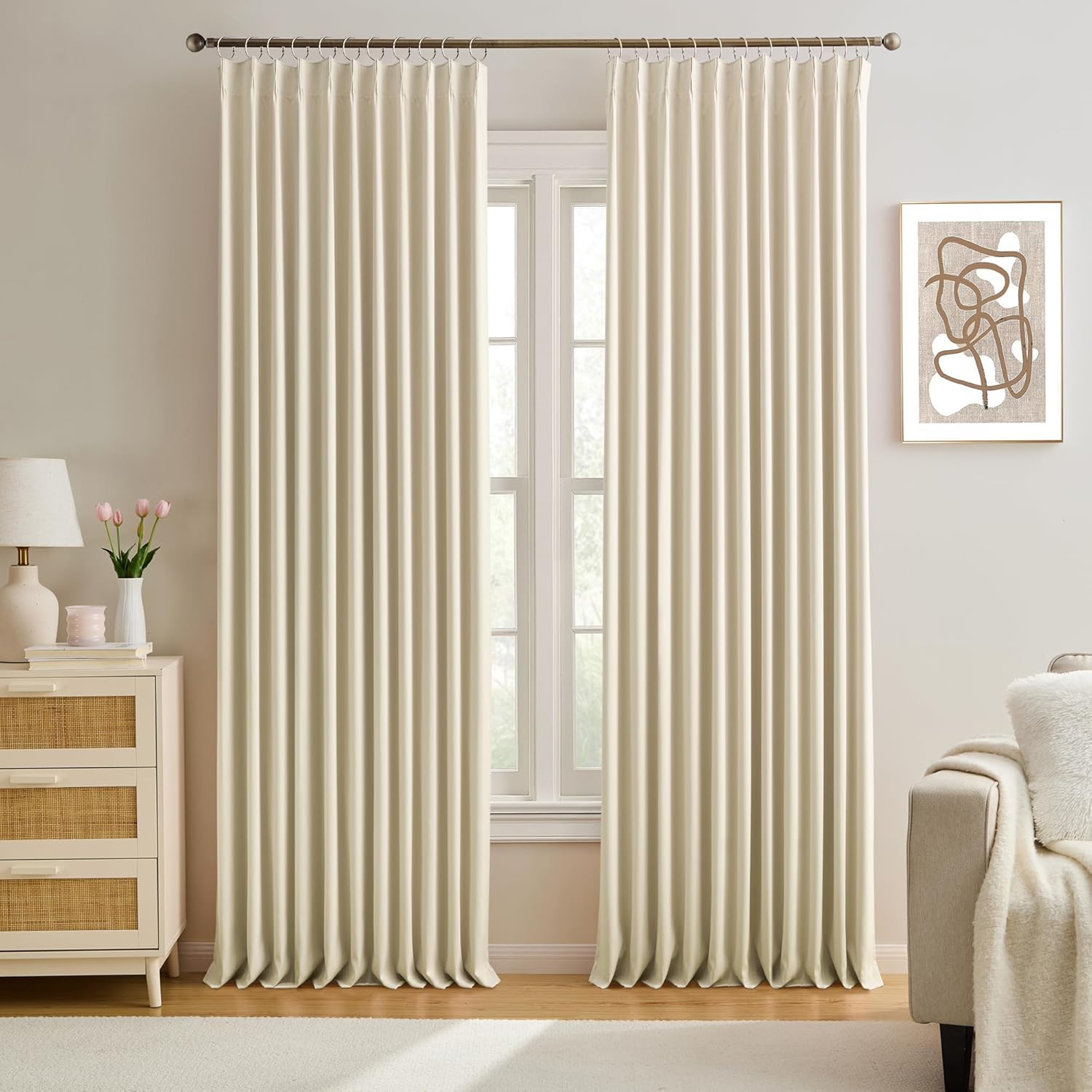 KEQIAOSUOCAI Cream Beige Blackout Curtains 105 Inches Long, Privacy Window Drapes for Living Room/Dining Room/Bedroom, 72 Inch Wide x 105 Inch Long, Pinch Pleat with Hooks, 2 Panels