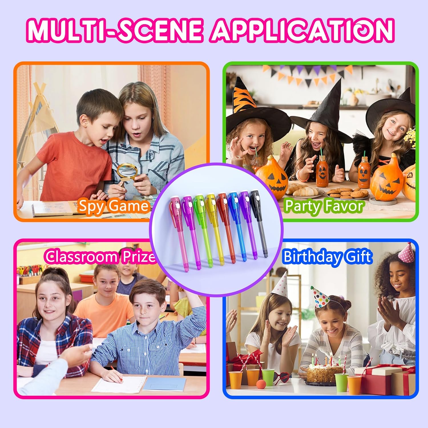 - 🎁【Party Favors Toys for Girls and Boys】Are you looking for unique and exciting party favors for your child's birthday? Then try our party toys- invisible ink pens with uv light for kids! From magic markers to spy games,to add fun and mystery to your child's party. Magic markers gift for 6-12 year old girls and boys on Valentine's Day, back to school, homeschool, birthday, Easter, Children's Day, Thanksgiving Day, Christmas and any occasion!