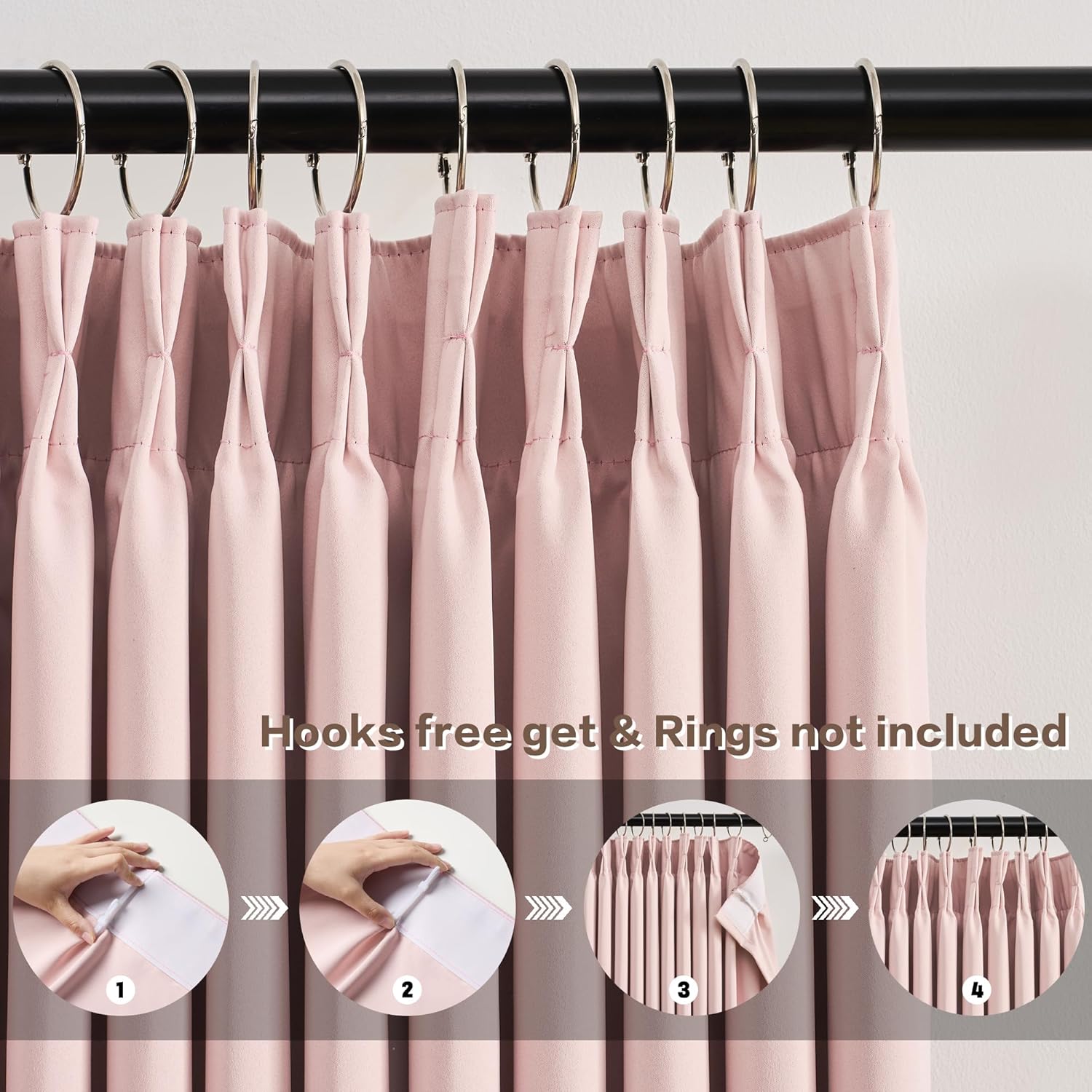 KEQIAOSUOCAI Custom Pleated Curtains Fabric Baby Pink Color, Heat Blocking Window Treatment for Bedroom Vertical Draft Blackout for Living Room 40 Wide by 90 Inch Long, 2 Panels, Pinch Pleat