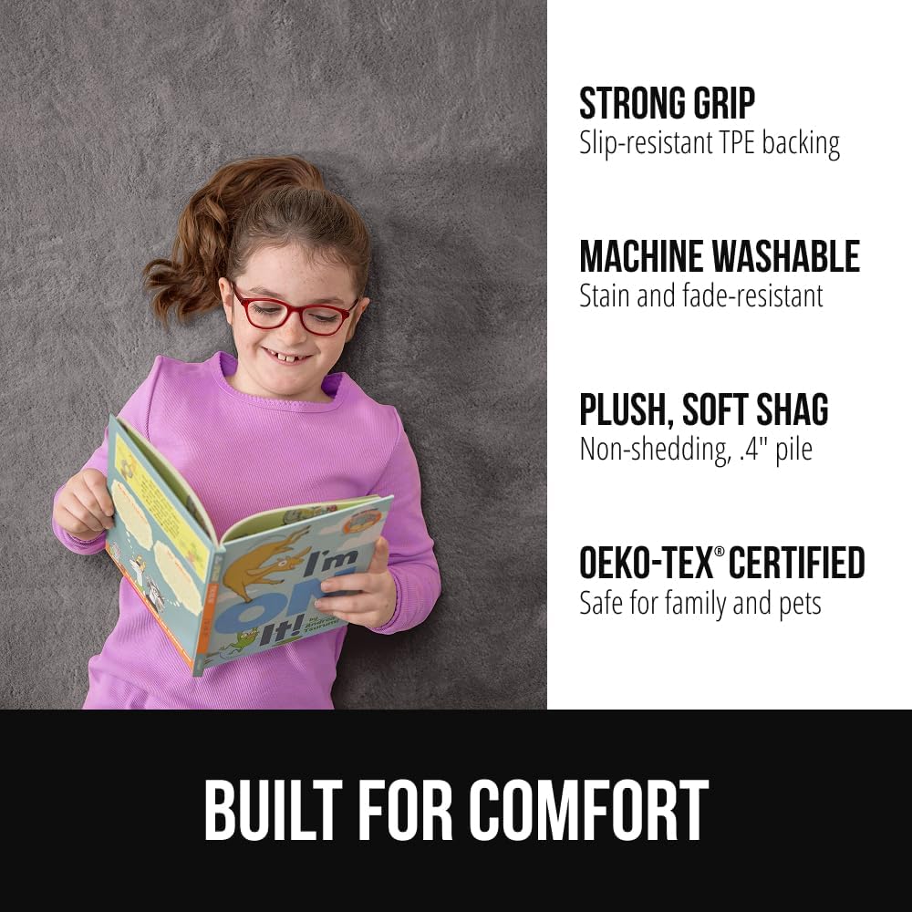 GORILLA GRIP Ultra Soft Washable Area Rug, 8x10, Stain and Slip Resistant Plush Thick Carpet for Bedroom Living Room, No Shed Floor Rugs, Pet Friendly, Dorm Essentials, Kids Nursery Home Decor, Gray