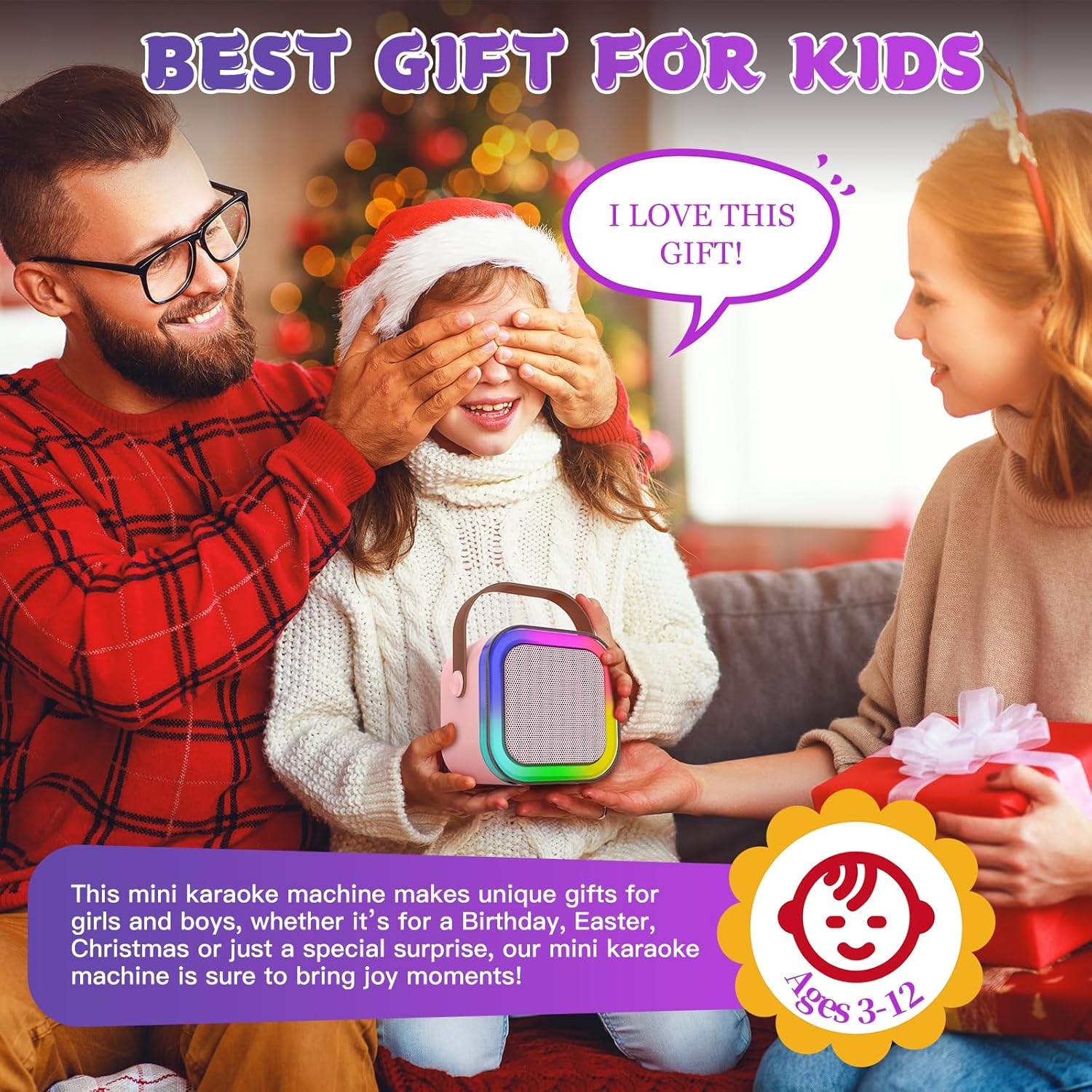 - Perfect Gift for Any Occasion: With its stylish design and beautiful packaging, this karaoke machine makes for a cool gift for girls aged 3,4,5,6,7,8,9,10,11,12+. Transform any place into a stage with this ultra-portable kids karaoke machine. Ideal for Christmas, Valentine's Day, Halloween, Easter, Thanksgiving, Children's Day, and New Year celebrations. Perfect for families, kids, karaoke parties, outings, fitness, meetings, etc.