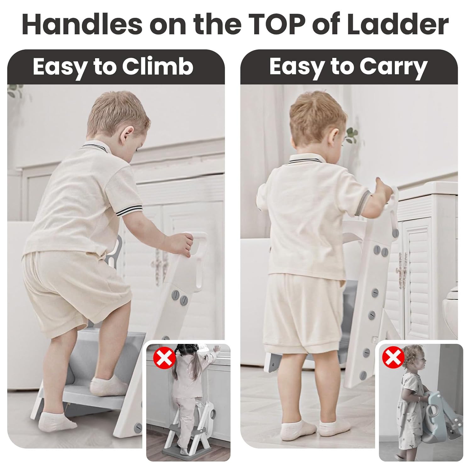 - Adjustable Step for Growing Toddlers: Two step heights fit toddlers of different ages. Raise it for younger kids, lower it as they grow—so their feet rest comfortably without hitting their legs