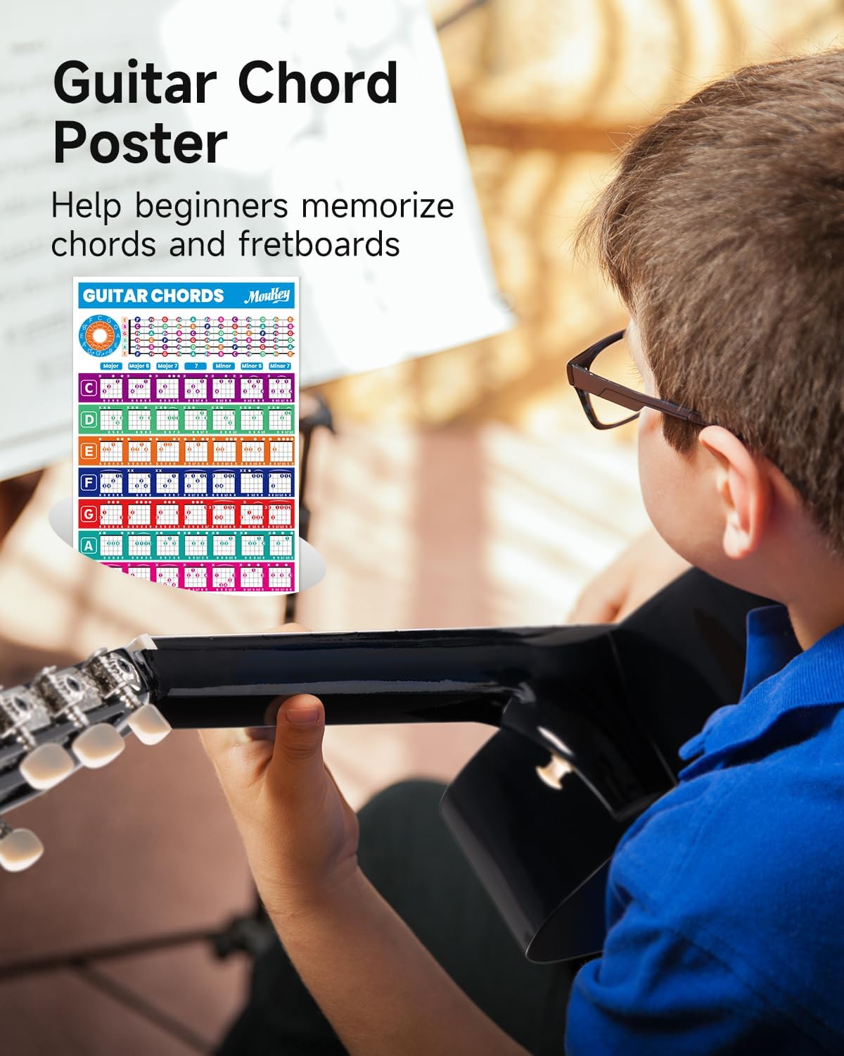 - Ideal for Small Beginner: Moukey 38” acoustic guitar is equipped with soft nylon strings that are easier to hold down, and it will not cause pain in fingers and reduce damage on the guitar bridge. Comes with a chord poster for easy learning, suitable for kids, teens, and adults.