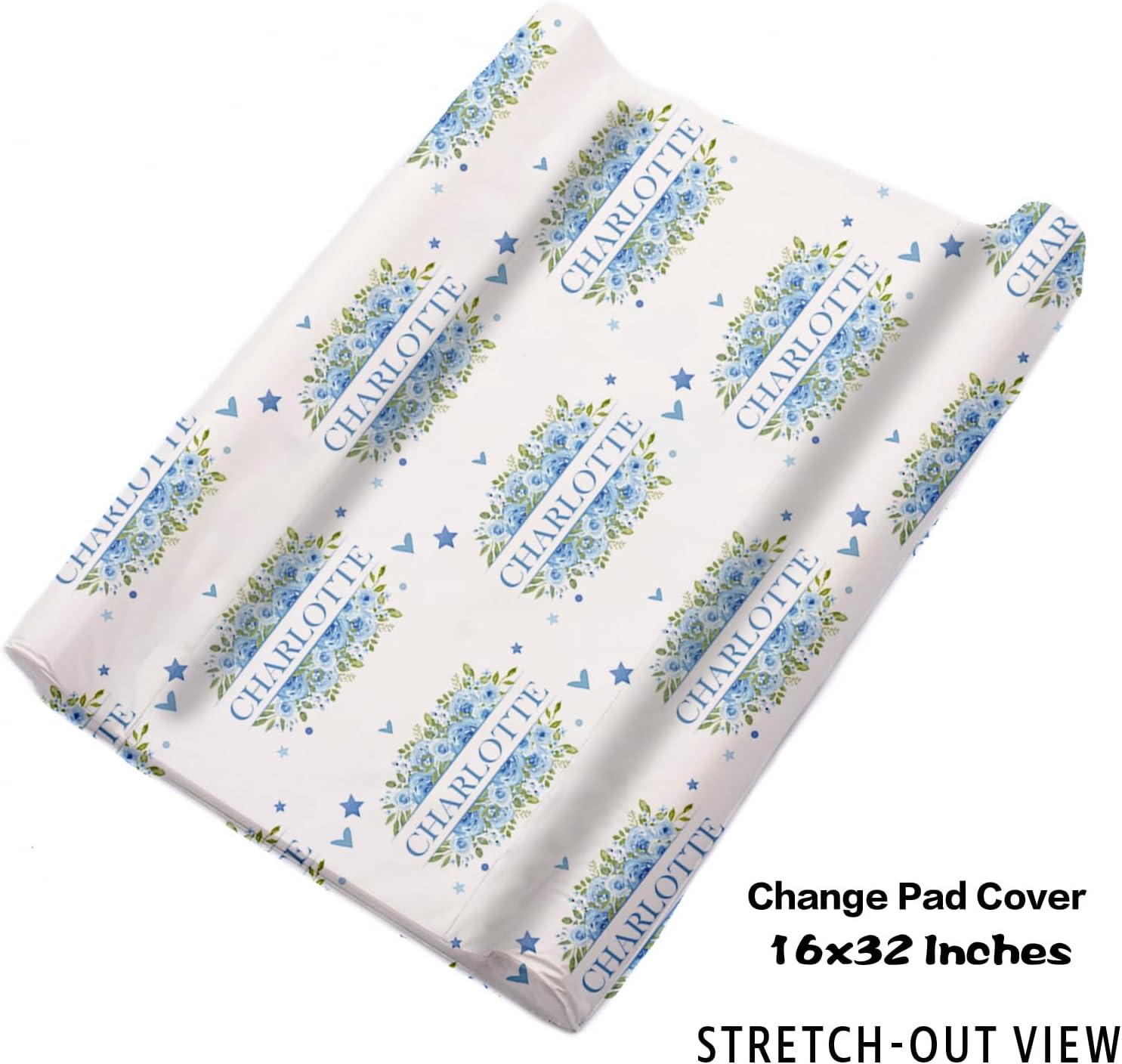 Custom Nursery Crib Bedding Set: Personalized Name 4 Piece Blue Floral Leopard Design Baby Crib Sets for Baby Girls - Toddler Double Layer Blanket Set, Comfortable Crib Bed Sheets for Baby Toddlers