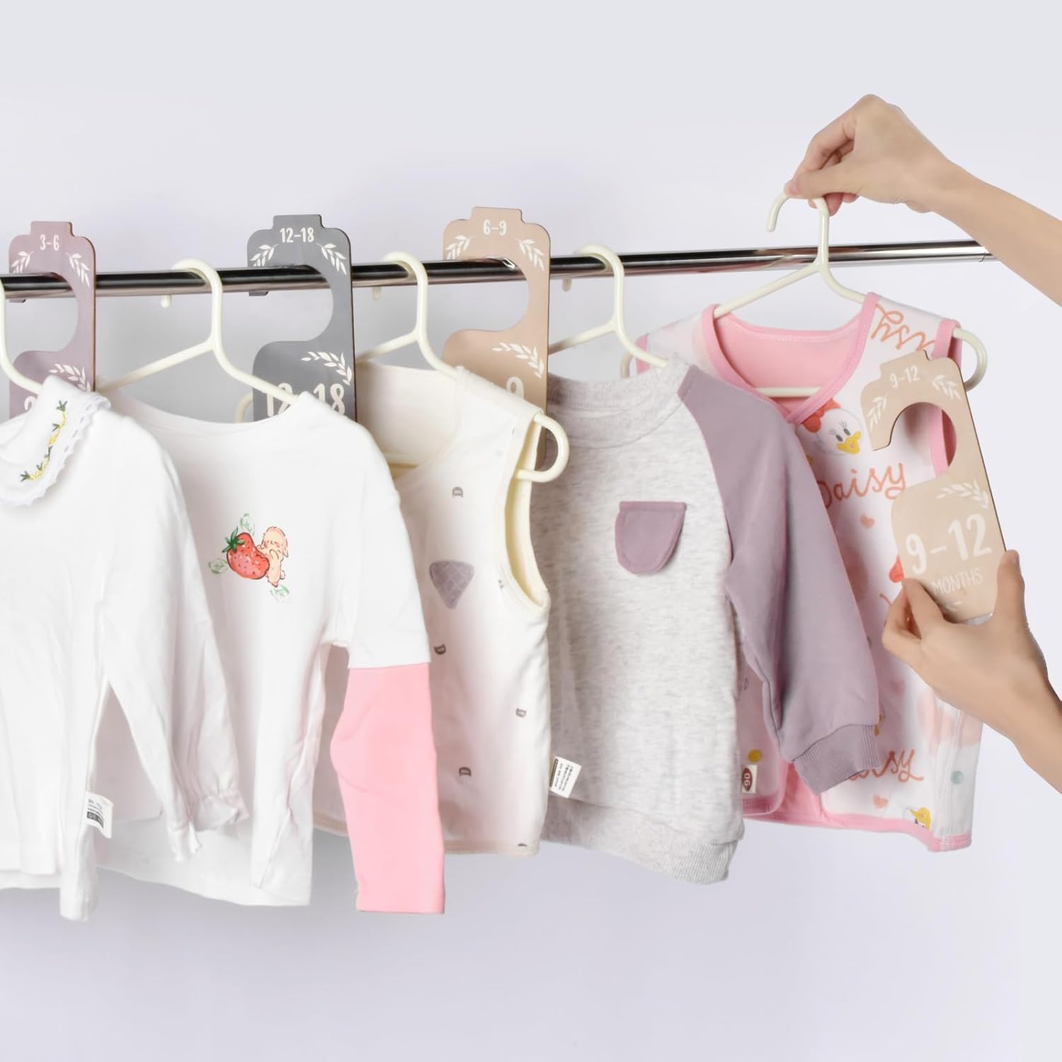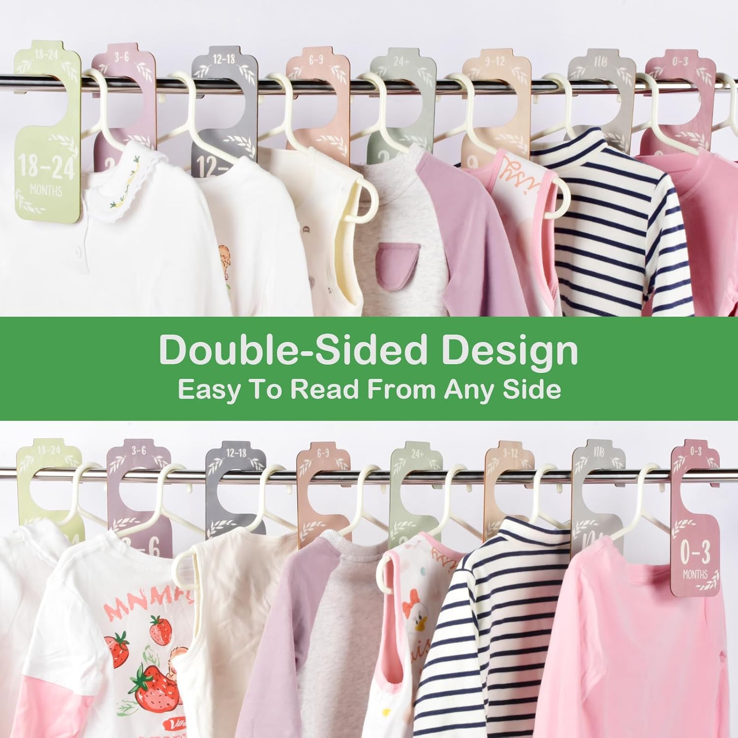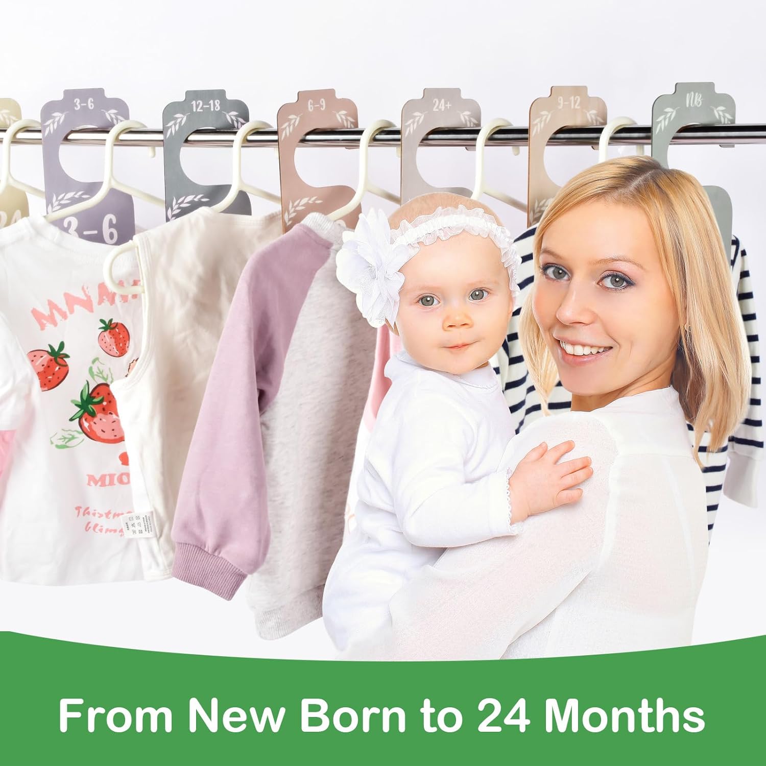 - Create A Nice And Organized Baby Closet- Baby closet dividers make it easy to stay organized! This adorable baby closet organizer set includes 8 dividers for newborns, 0-3, 3-6, 6-9, 9-12, 12-18, 18-24 months toddlers, so you can always be prepared for your baby's growth