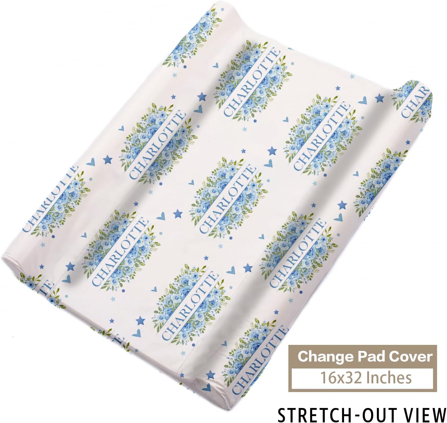 Custom Name Crib Bedding Set - Blue Floral Leopard Pattern, Personalized Nursery Bedding 3-Piece Set– Soft Blanket, Fitted Sheet, Changing Pad Cover – for Newborns Girls Nursery Gifts