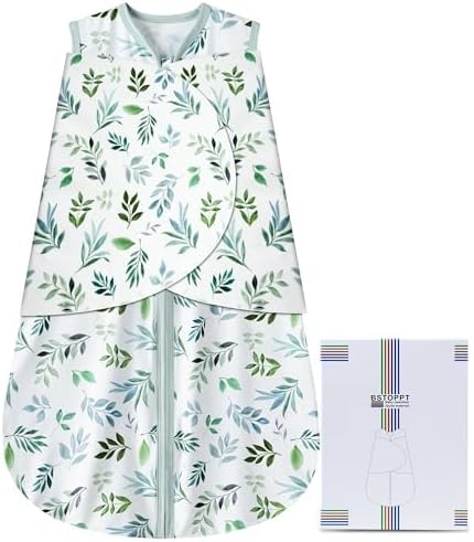 Newborn Sleep Sack Baby Swaddle,Swaddle me 0-3 Month,3-Way Adjustable Wearable Blanket,100% Rayon Cotton Swaddling Sleeping Bag,TOG 0.5 (Leaf, 0-3 Months)