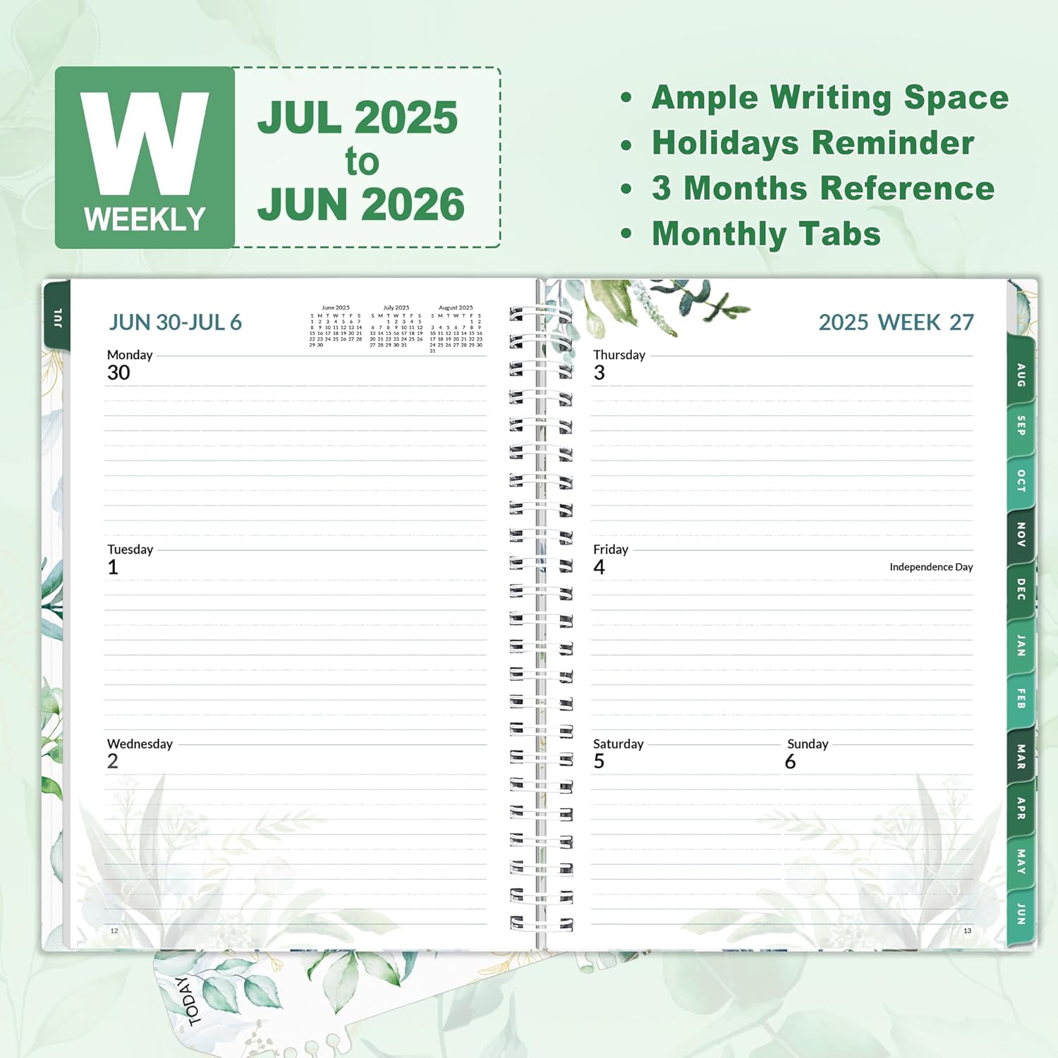 SUNEE Academic Planner 2025-2026 Weekly and Monthly - from July 2025 to June 2026, 6.4"x8.3" School Year Calendar Daily Planner with Monthly Tab, Flexible Cover, Note Pages, Spiral Binding, Greenery