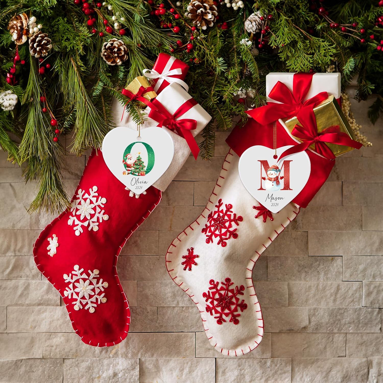 - CUSTOMIZABLE CHRISTMAS TREE DECOR: Enhance your holiday decor with our Christmas initial ornaments. The name ornaments design can be part of a set of Christmas ornaments with initials, you can use this Custom Initial Ornaments as a decor item in your Christmas Tree, Stocking, Gift Card. These initial Christmas tree ornaments are a wonderful way to celebrate each family member uniquely.