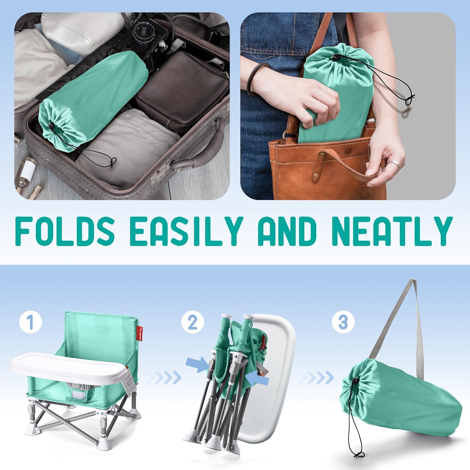 - CERTIFIED SAFETY FOR YOUR LITTLE ONE: The portable baby chair is rigorously tested and certified, meeting strict US safety standards. Passed US safety requirments of sharp points, heavy metals, or small parts testings etc, it’s designed to protect your child from harm. Plus, it’s BPA, Phthalates, and AZO-free, 3-point safety harness, ensuring a safe and healthy space for every meal.