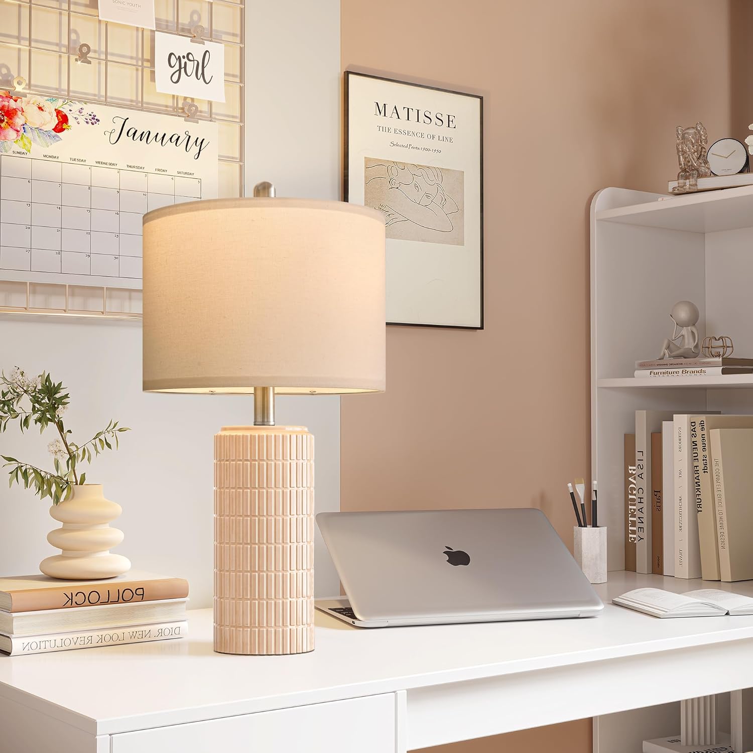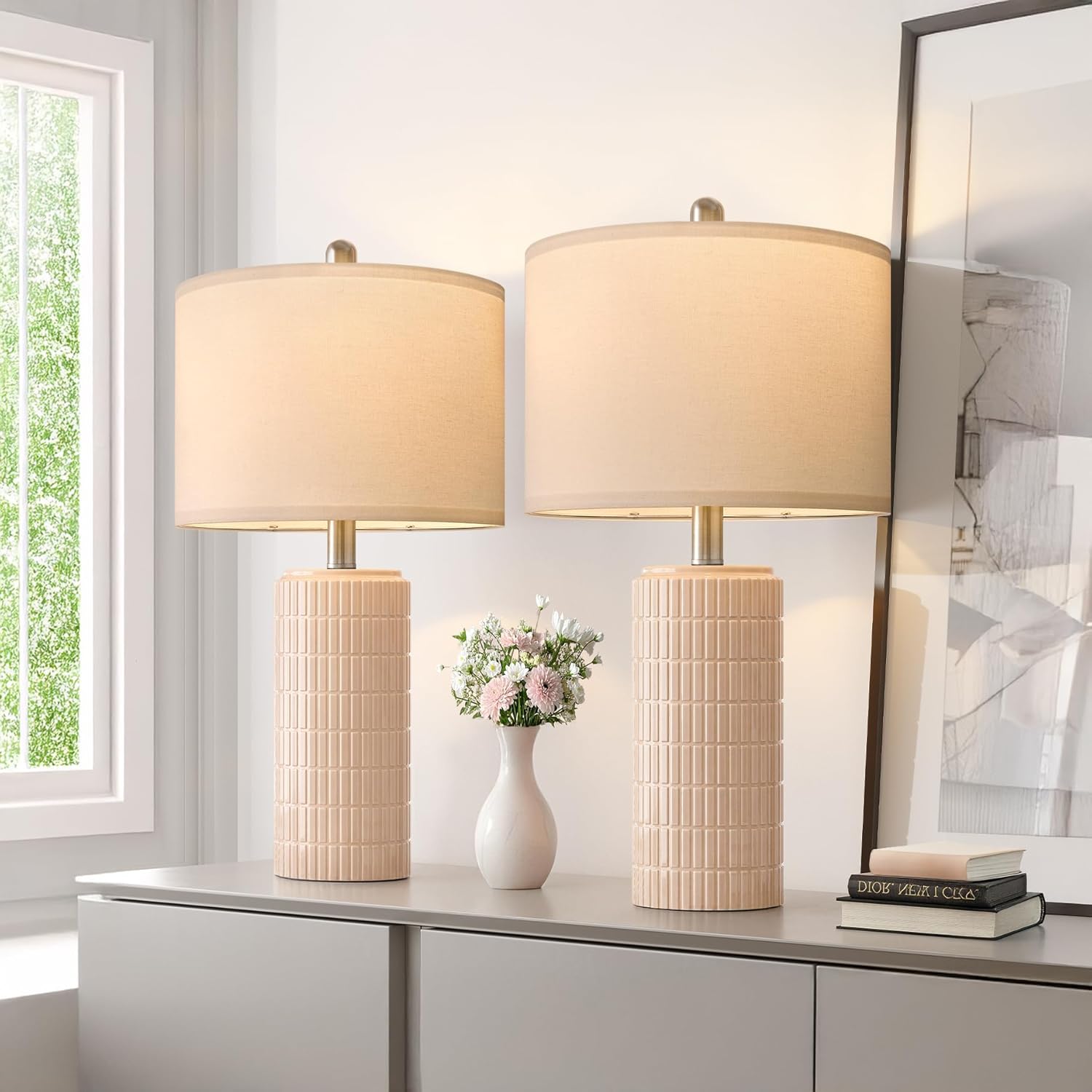 PoKat 23" Pink Ceramic Table Lamps Set of 2, Modern Bedroom Lamps for Girls Room, Bedside Lamps for Night Stands, Cute Lamps for Living Room Decor, Nightstands Desk Lamp, Pink