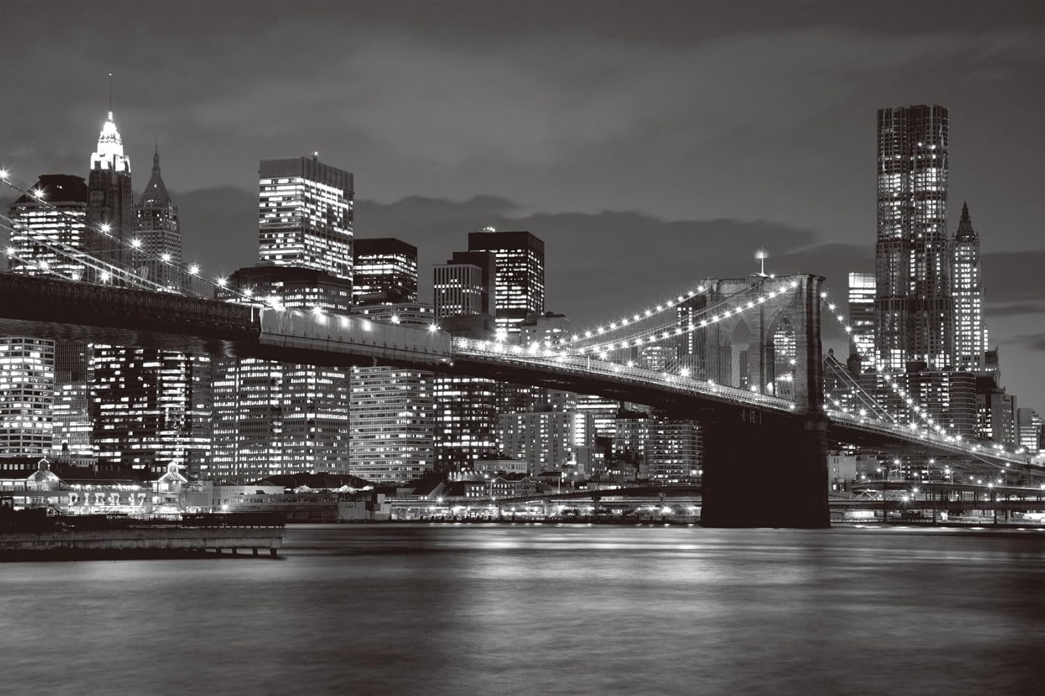 Grey City Wallpaper Brooklyn Bridge Nightscape Wall Mural for Living Room Bedroom Dining Room Office(Not Self-Adhesive)