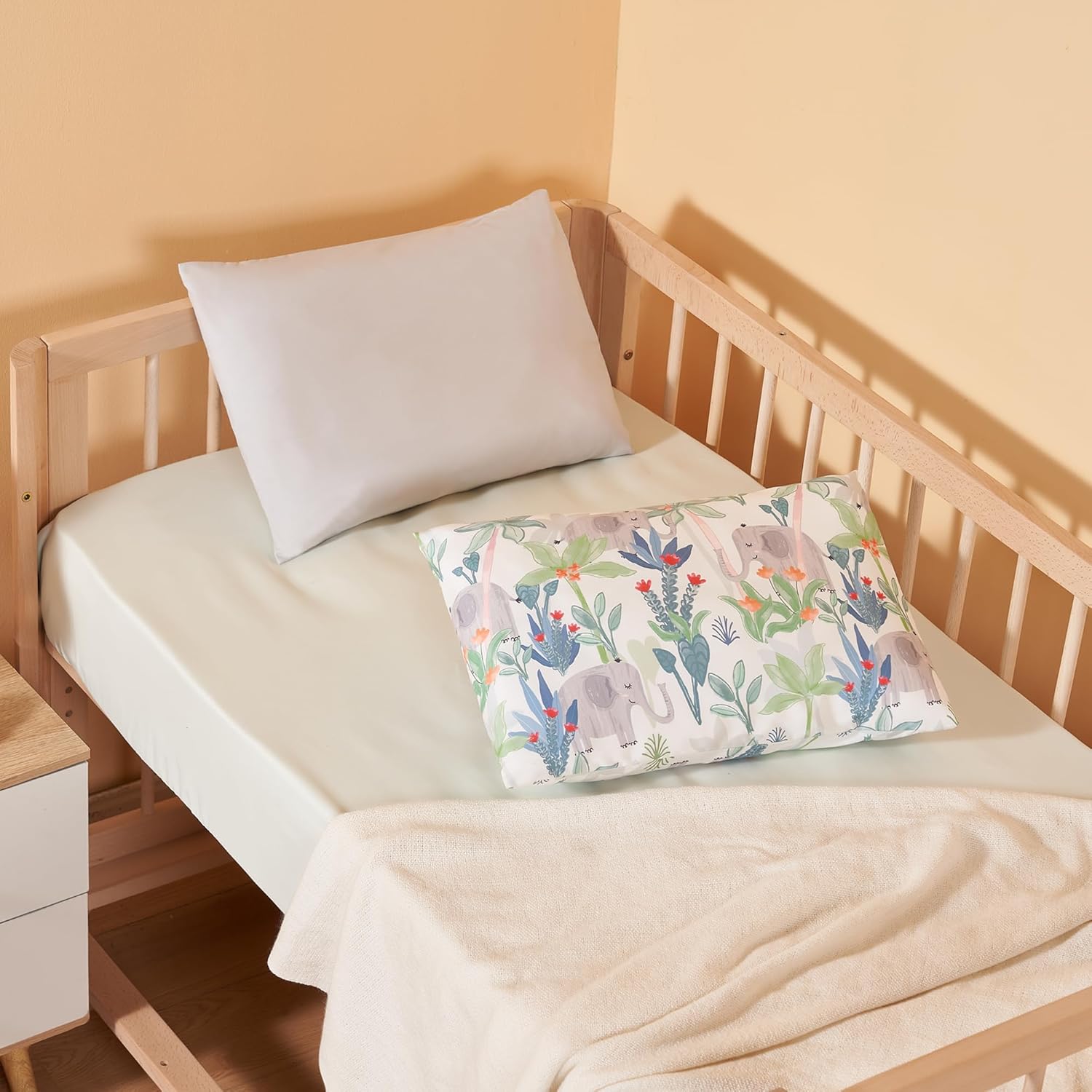 TILLYOU Toddler Pillowcases 13 x 18 Travel Pillow Case 2 Pack, Kids Pillowcases Machine Washable with Envelope Closure, Rainforest Elephant & Grey