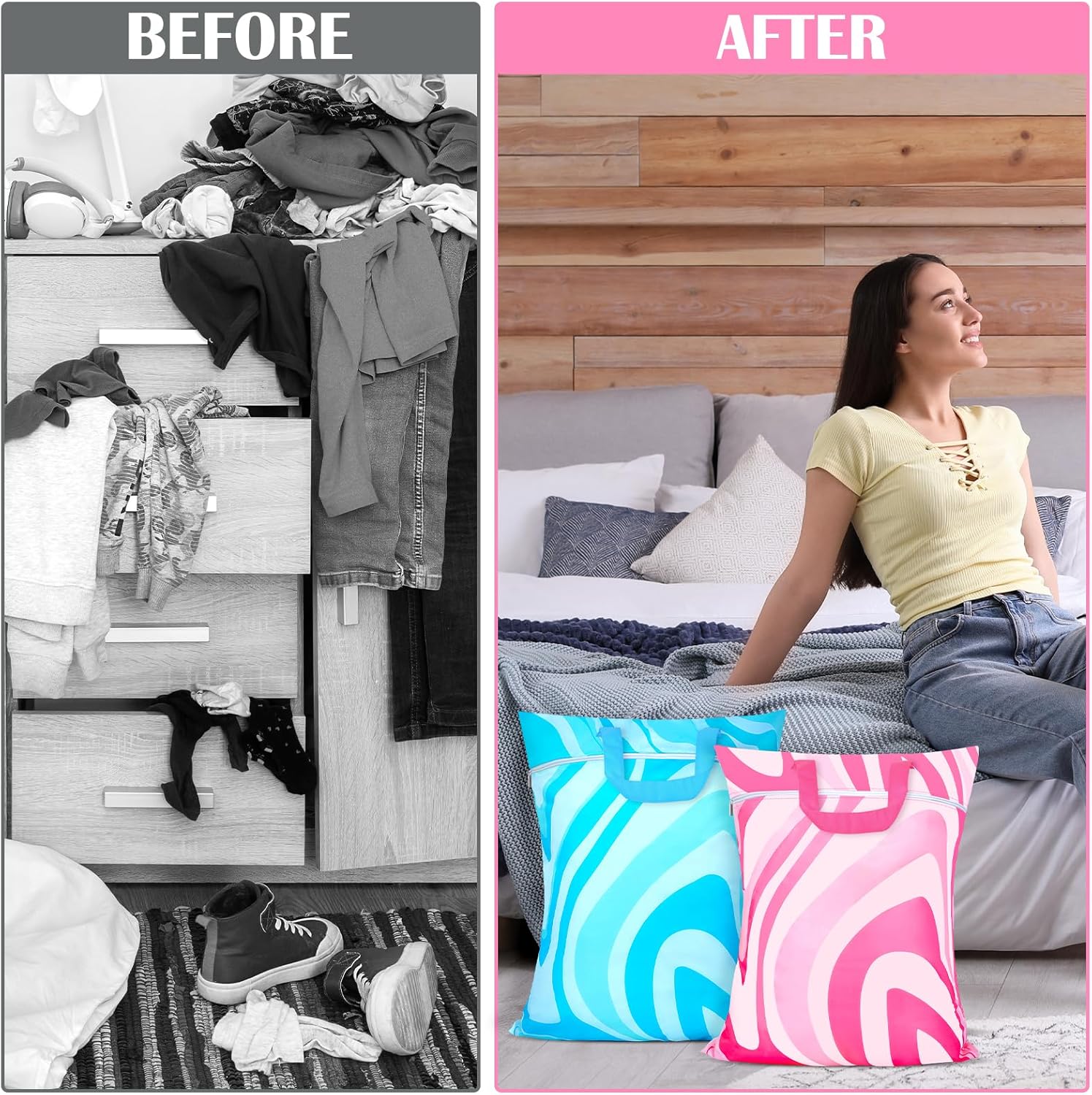 - Convenient Zipper and Handle: The wet dry bag is designed with a handle on the top,convenient to carry and store without occupying much space, and it can also be hung on door handles, towel poles, door hangers, hooks and so on, bringing you much convenience