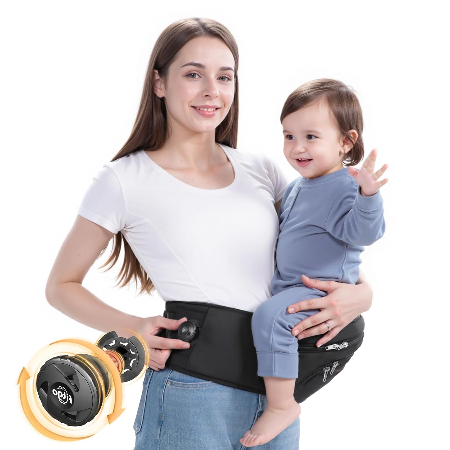 Baby Carrier with Hip Seat, Parent-Approved Baby Hip Carrier & Toddler Carrier, Comfortable Wide Waist & Lumbar Support, Thick Seat with Storage, Adjustable Knob, Supports 44lbs, Black