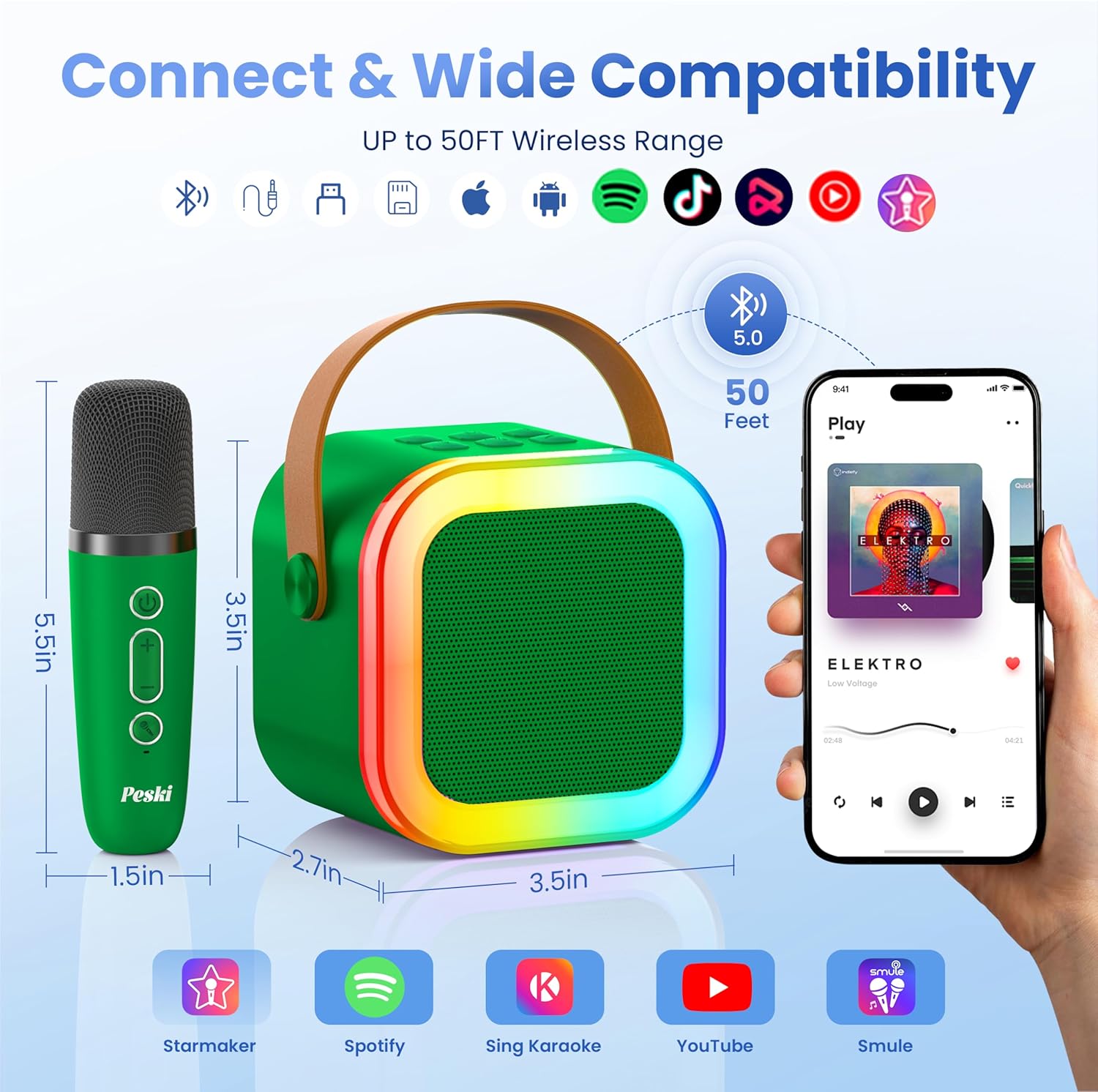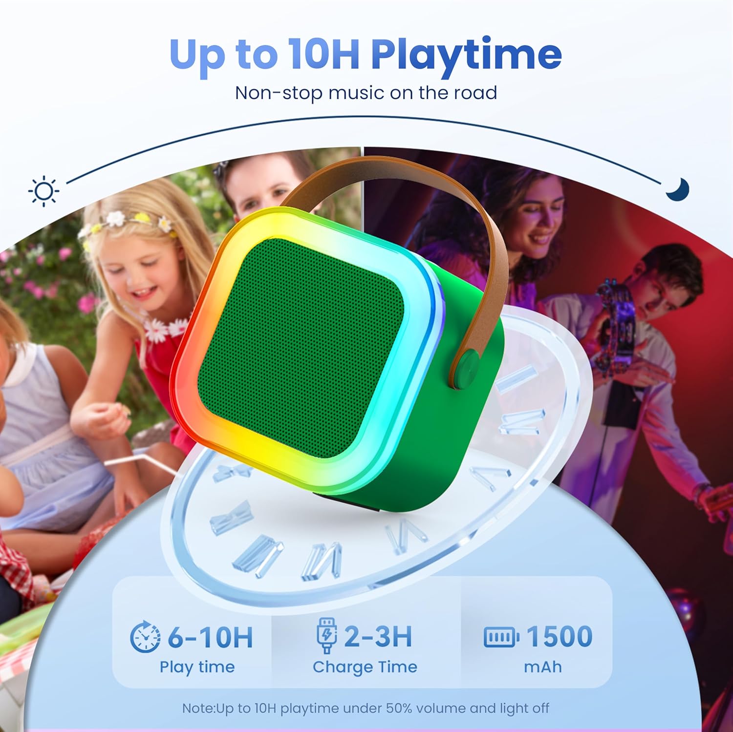 - 【6-10H WORRY-FREE BATTERY LIFE】: Peski's exclusive, long-life rechargeable battery technology. Quicker charging,and it can doubles as a power bank to charge your smartphone/tablet, long-time lasting design in order to make it easy to bring the party with you wherever you go,perfect for parties and family gatherings!