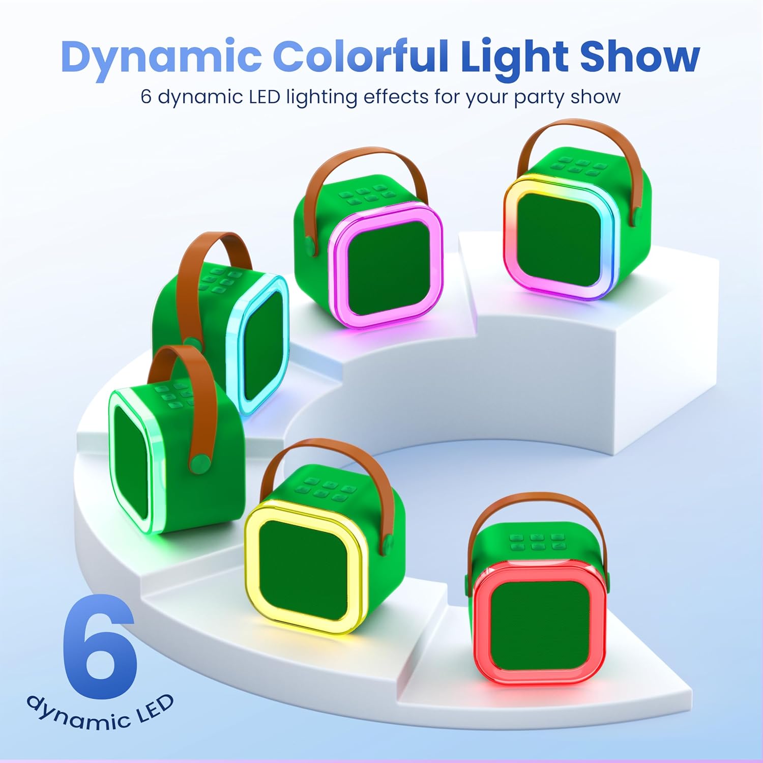 - 【5 MAGIC VOICE & COLORFUL LIGHTS】:The PA karaoke system is equipped with colorful disco lights and has an independent button to switch the lights.5 magic voice effects: monster, baby, female, male,original/accompaniment,this Bluetooth party speaker is providing endless fun and happiness for adults and kids.