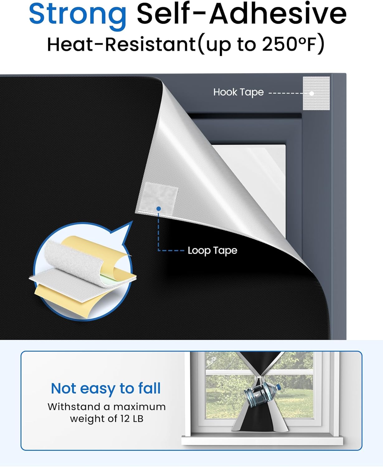 - ✨【Upgrade Heat-Resistance Magic Tapes】Sumobaby 44"x64" blackout curtain for bedroom features premium pre-attached tapes for easy,drill-free installation.Two extra tape strips included,each splitable into 5 squares.Made of acrylic, these tapes leave no residue,providing strong adhesion and heat resistance(200°F to 250°F).Bid farewell to concerns about your black out curtains slipping in hot weather.