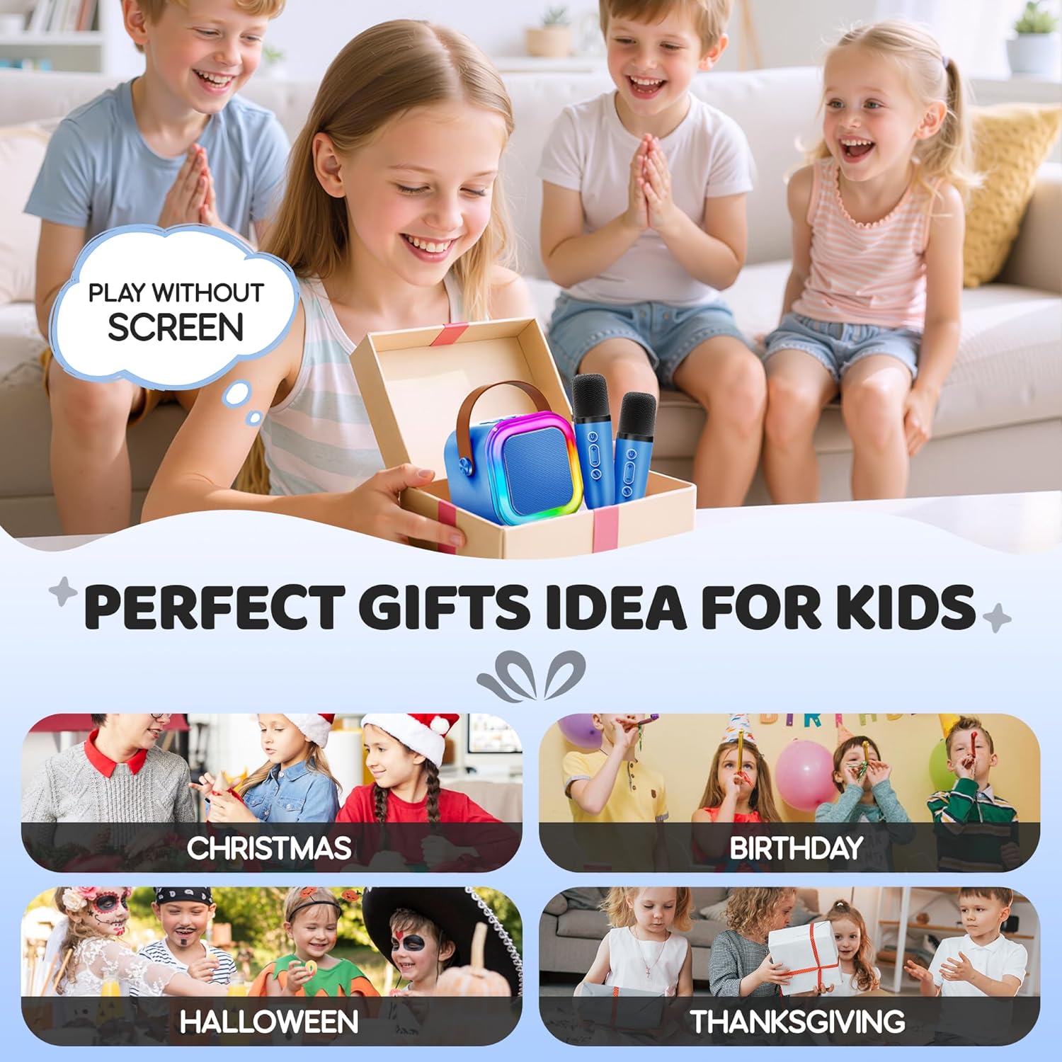 - Amazon’s Top Gift for Kids 4-12+: A hit for everyone from toddlers to adults. This karaoke machine is crafted from compact design, and non-toxic materials make it a unique gift for all ages. Perfect for Birthdays Surprise, Christmas stockings, Mother’s Day, Halloween, Thanksgiving, Galentines, or any other celebration. Includes a stylish gift box—Ready to Show