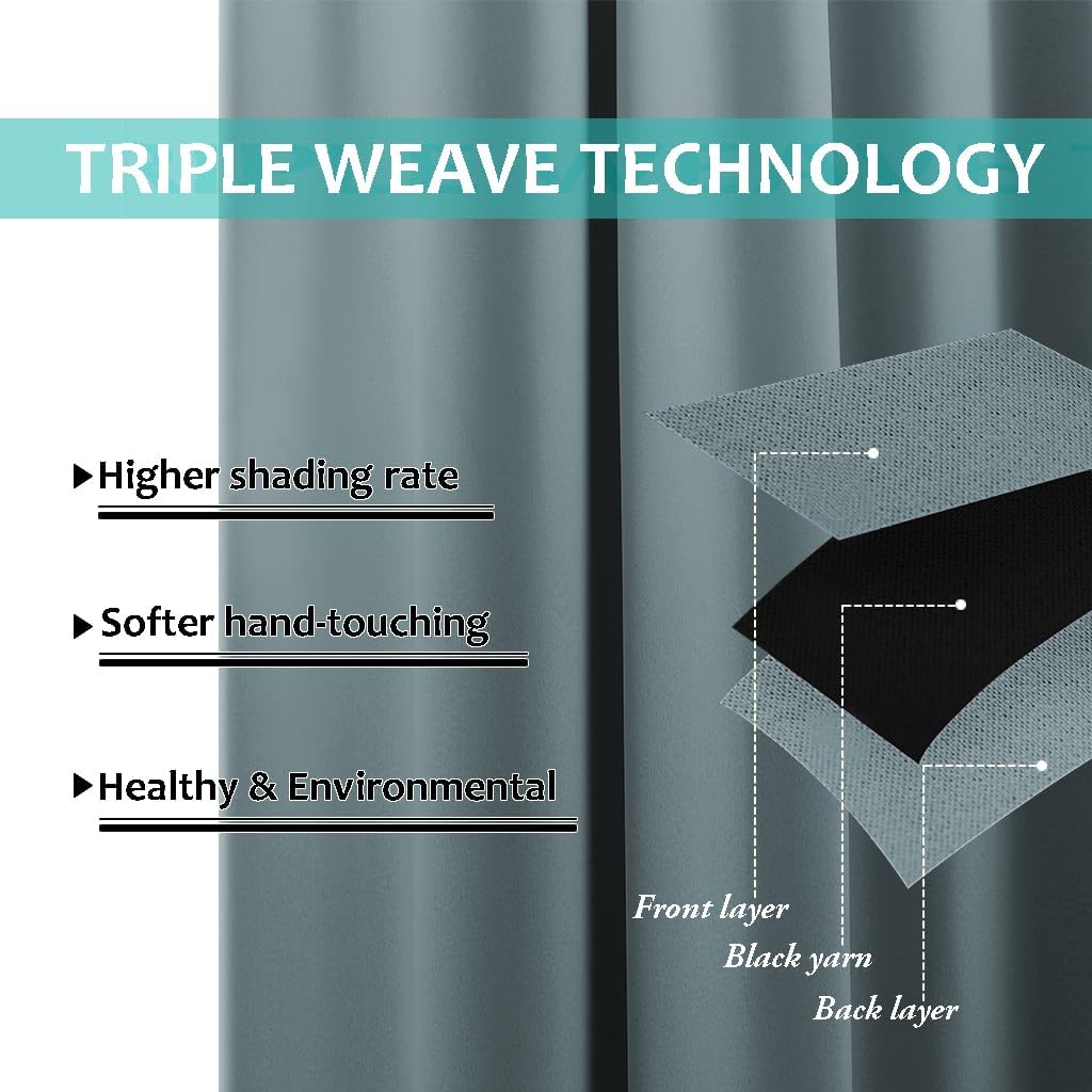 - UNIQUE DESIGN: Draperies constructed with 2 layers are all triple weave blackout fabric, balancing room temperature by insulating against summer HEAT and winter CHILL meanwhile protect PRIVACY. No chemical coating, no formaldehyde, ECO-friendly, bring harmonious to your family.