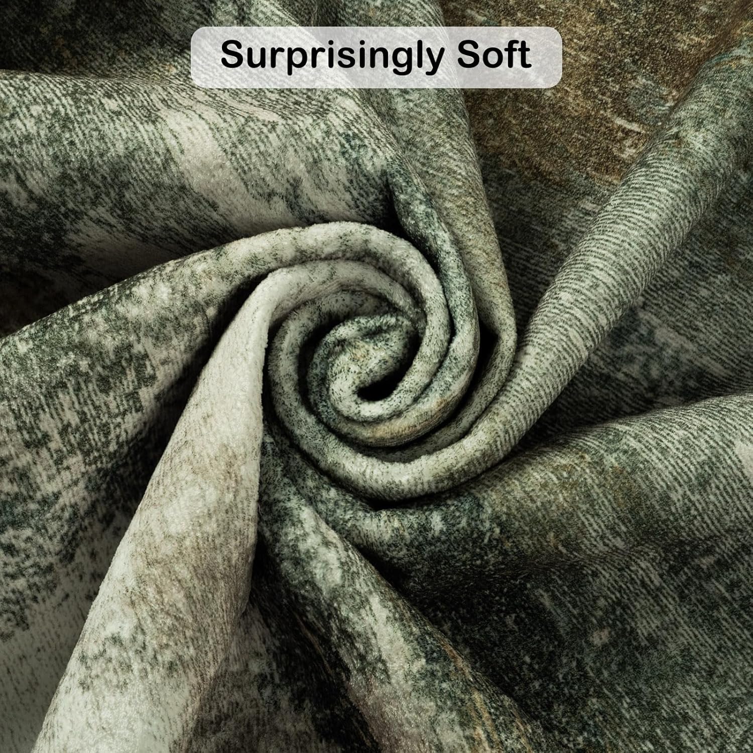 Kelarea Living Room Rug, 4x6 Rug Modern Abstract Washable Rugs Green Faux Wool Vintage Carpets, Non Slip Rugs for Bedroom, Dining Room, College Dorm, Kids Playroom, Home Office