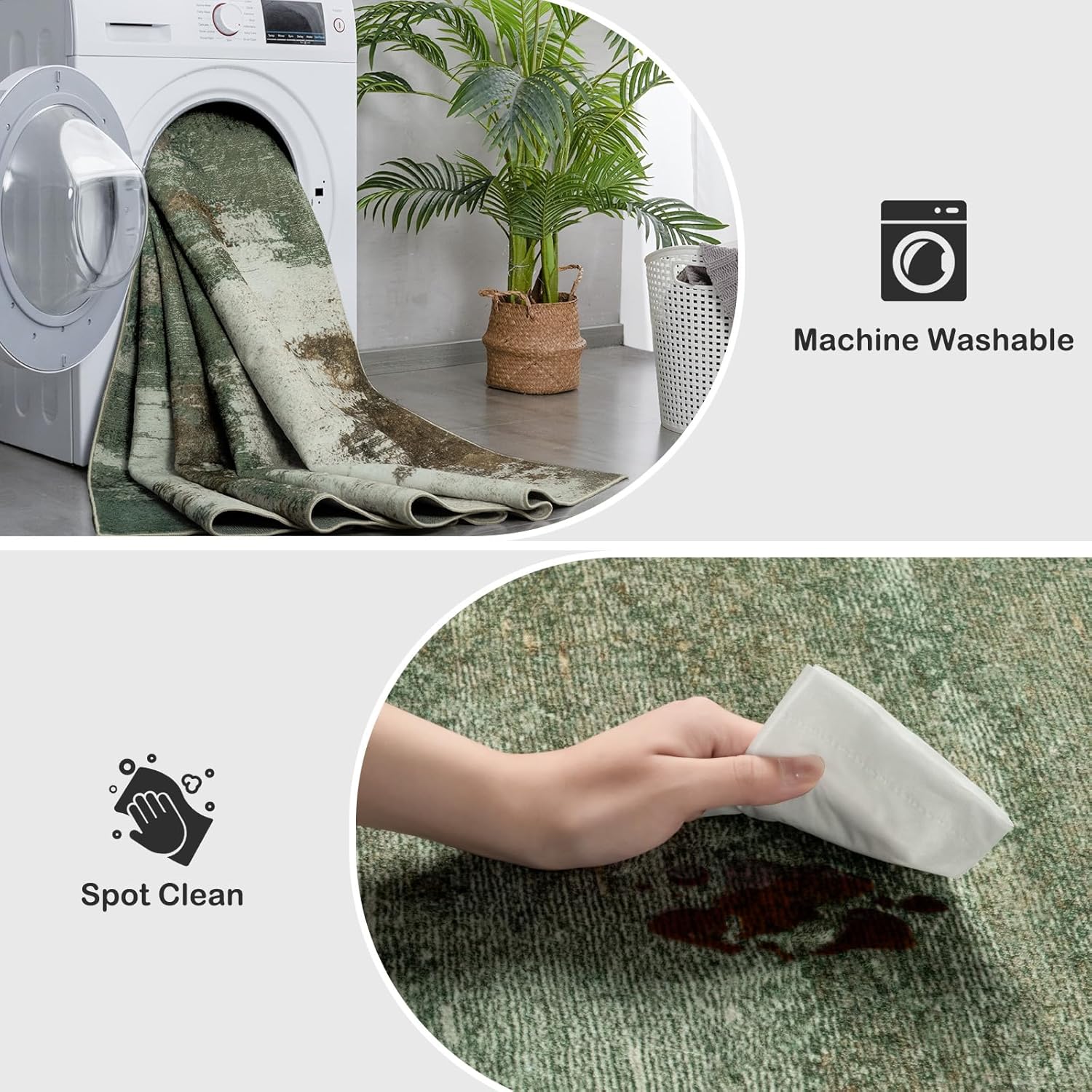 - Easy to Clean:The 4x6 green rug can be wiped or vacuumed to remove the fine dust and stains of everyday life. It can also be machine washed if necessary, and this low-maintenance design ensures you can enjoy life to the fullest. Tip: The washable rugs may be wrinkled, but don't worry. You can spray water on the creases and then place the rug face down or hang or lay it flat and the creases will disappear naturally after a few days of use