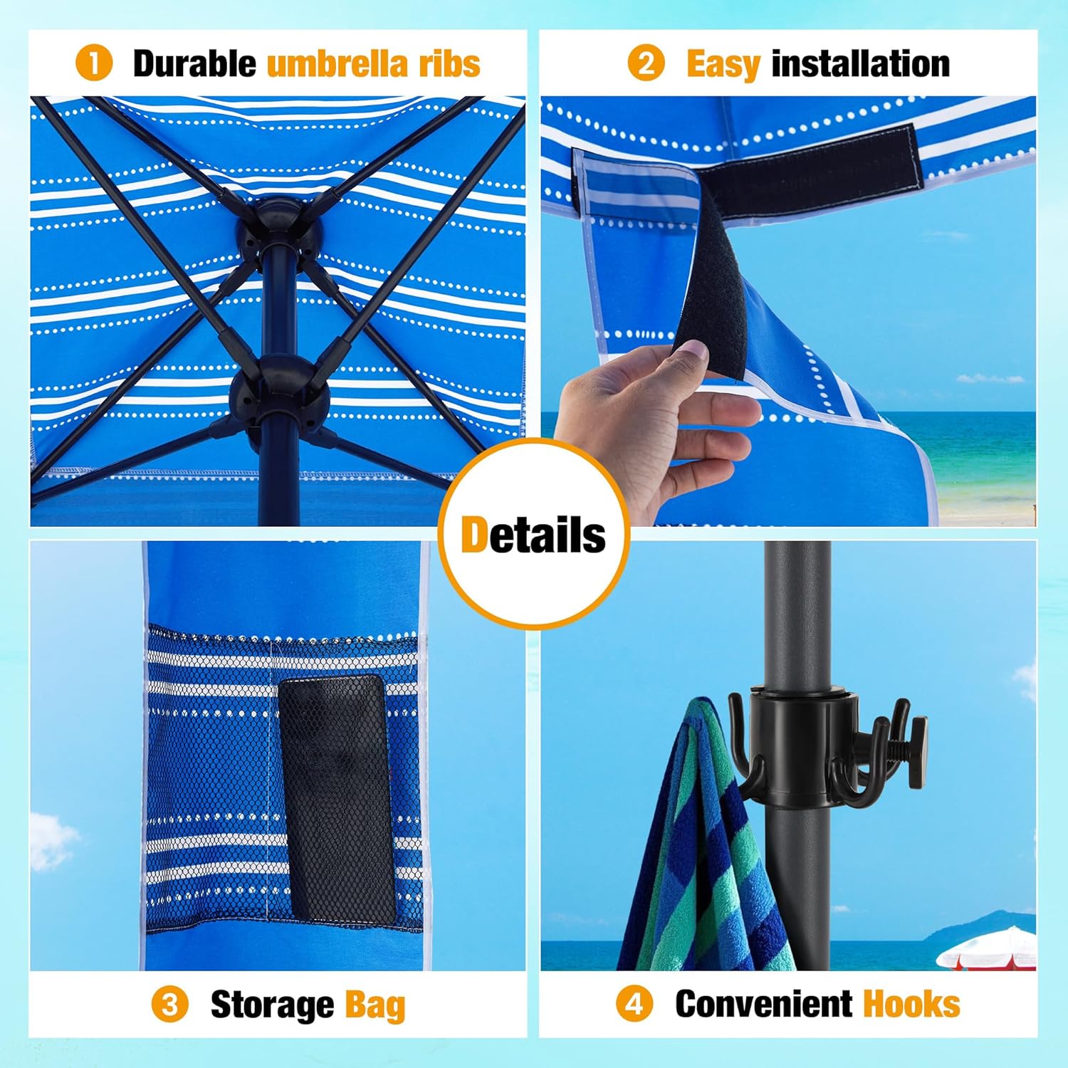 - New Upgrade in 2025: Each beach tent comes with a Removable Sidewall. There are numerous pockets under the Sidewall where you can put sand to hold the sunshade in place. This not only provides you with a more private space but also blocks the sunlight from the side. The Sidewall is detachable. The enlarged sand anchors are firmly fixed on the beach and won't be blown down by the wind, offering you an excellent beach experience.